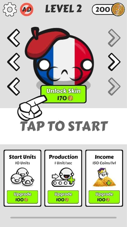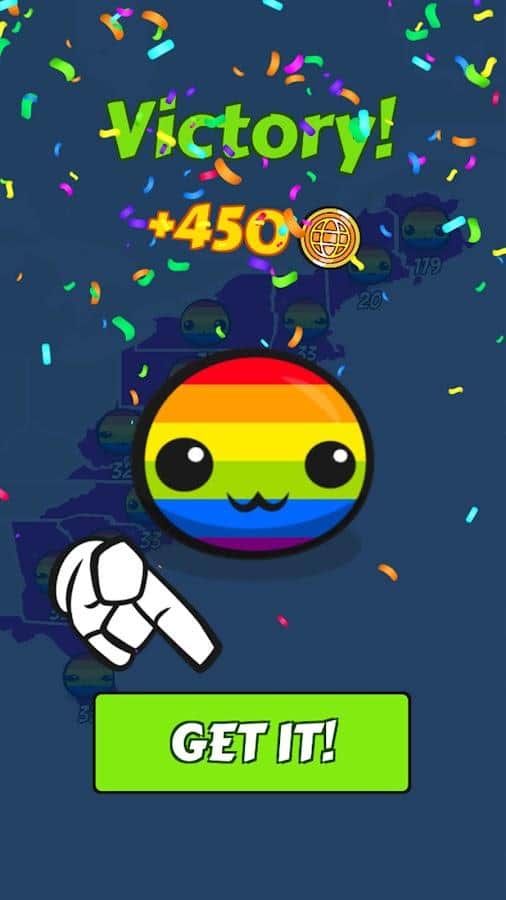 Игра хорошая.плюсы: в том что уровни бесконечные,ещё есть не только страны но шляпки и эмоции.Минусы:там боты и здесь есть флаг... Вы сами понимаете какой😓