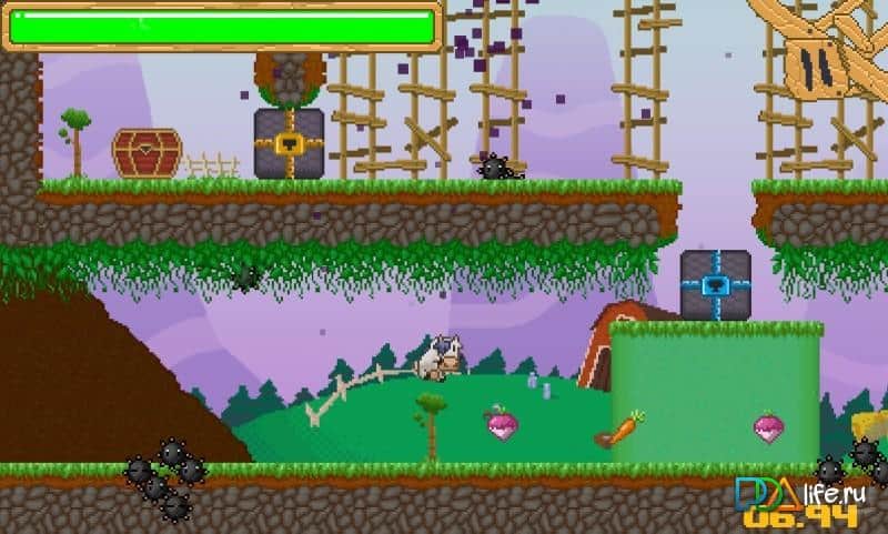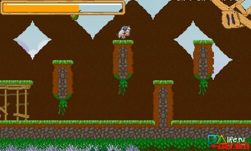 Cow Dash – пиксельная корова бегающая по пиксельном полям и собирающая пиксельные бонусы возможно составит вам коллекцию вместе с вашими любимыми играми. Звёзд с неба она конечно не хватает, но приятно провести свободное время по пути в школу или универ она точно сможет. Вас ждут более 50 уровней, которые необходимо пройти. Управление простое как никогда. Одно нажатие и корова прыгает, задержим кнопку и корова прыгнет ещё выше. Звучит очень просто, а на деле можно один и тот же уровень проходить по несколько раз подряд. За прохождение уровня вам будет даваться от одной до трёх медалей.