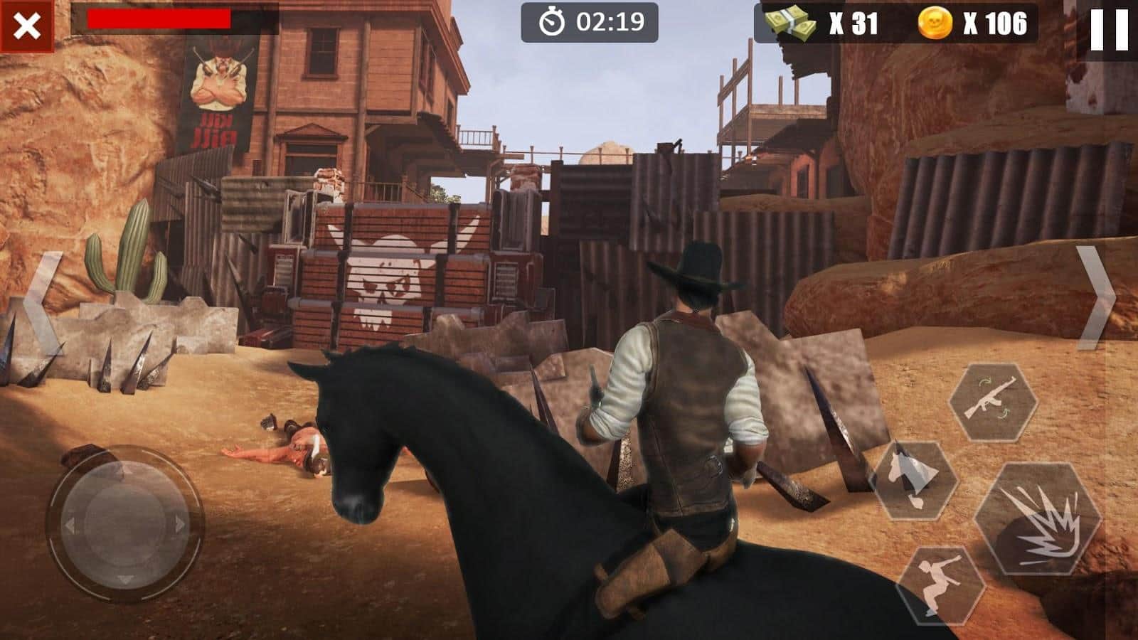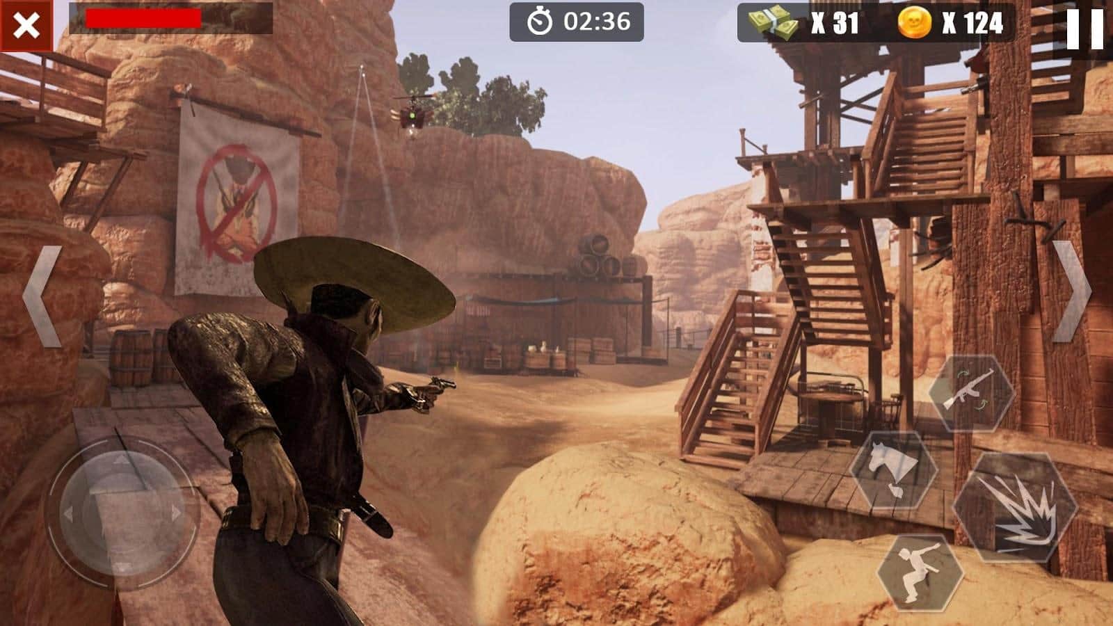 Cowboys Adventure – приключенческая игра на андроид, где вы будете управлять ковбоем на Диком Западе. В этих местах обитают американских прерий обитают одни гангстеры, бандиты и охотники за головами, даже шериф может продать вас за небольшую сумму денег. Возьмите под свой контроль ковбоя и отправляйтесь в путешествие к золотым рудникам Клондайка и Юконе. Выполняйте опасные миссии и задания игры и получайте награды и бонусы. Попробуйте себя в роли охотника за головами и покажите на деле свои умения владеть оружием. Участвуйте в перестрелках с мафиозными гангстерами и выживайте в опасных условиях западного мира.