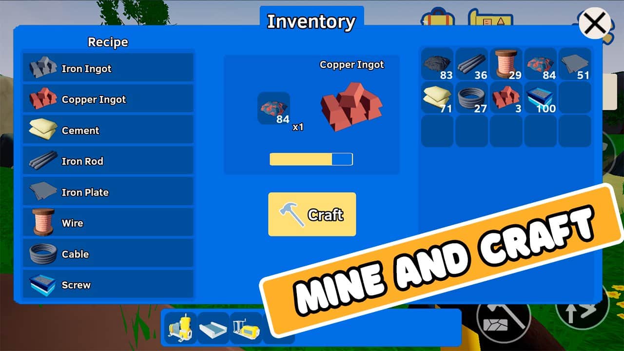 Craft Factory Simulator 3D - это уникальный 3D-симулятор от первого лица, который погрузит вас в захватывающий мир автоматизации и строительства фабрики. Игра предлагает вам возможность испытать наслаждение крафтового производства и создания фабрики в графике. Вам предстоит искать, добывать и создавать огромное количество ресурсов, таких как уголь, железная и медная руда, камень и многое другое, чтобы производить новые материалы для построек вашей заводской империи.