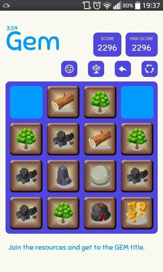 Craft the Gem in 2048 style – увлекательная головоломка на андроид, сделанная по подобию знаменитой игры 2048. В этой игре перед вами окажется квадратное поле, разделенное на плитки одинакового размера на которых то и дело будут выпадать различные объекты, которые вам предстоит объединять между собой. Соединять можно только одинаковые плитки и получать совершенно новые объекты в нашем случае ресурсы. Всего в этой игре представлено шестнадцать различных ресурсов, попробуйте открыть их все и заработать максимальное количество очков. Воспользуйтесь многочисленными бонусами по отмене хода или обману, чтобы быстрее завершить игру, но это будет стоить вам 500 очков.