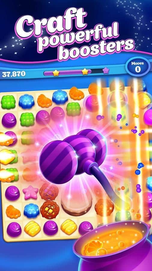 Crafty Candy – Match 3 Adventure – захватывающая волшебная игра на андроид, где вы будете путешествовать по сказочной стране и составлять ряды из сладостей. В этой игре вы будете помогать очаровательной ведьме Кэндис и ее кошке Печеньке путешествовать по волшебной стране. Пройдите зефирные долины, густые шоколадные водопады и страну пончиков и наслаждайтесь красочными локациями и многочисленными сладостями. Собирайте цепочки из конфет и сладостей и запускайте красивые фейерверки взрывов и получайте призы и бонусы. Проходите увлекательные уровни и играйте со своими друзьями, соревнуясь за лучшие результаты.