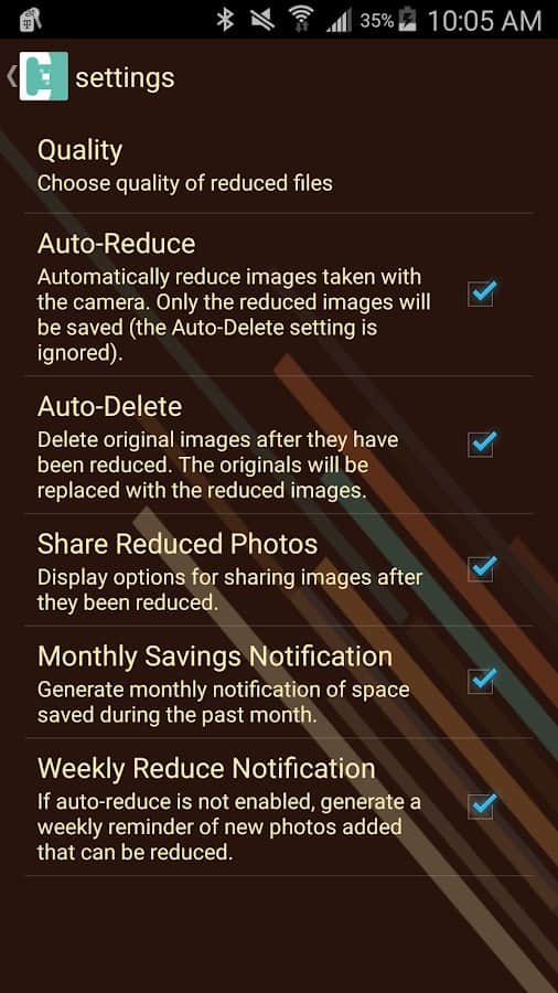 Автоматические и ручные настройки по удалению оригинала снимка из Галереи устройства после его уменьшения при помощи приложения