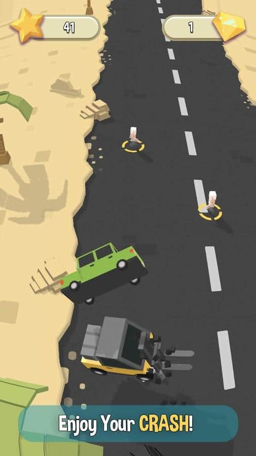 Crash Man: Car Drive - Встаньте на путь, наполненным большим количеством препятствий для проезда на автомобиле, но специально созданным для испытаний, поставленных перед собой! В режиме одиночной игры запустите процесс и начните проезжать мимо камней, ящиков, мусора, а также проезжающих рядом машин, чтобы поставить свой первый рекорд и потом все время его побивать, улучшая текущий результат. Управляйте машиной с помощью одного пальца, и когда в процессе игры вы получите достаточное количество драгоценных камней, разблокируйте новые виды авто.