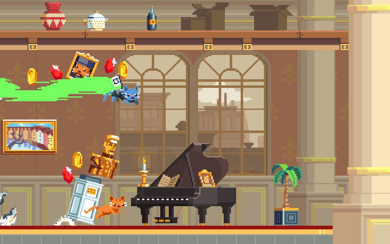 Crashy Cats — это игра-раннер о кошках, в которой вам предстоит бегать, прыгать, скакать и летать, опрокидывая как можно больше вещей, на протяжении бесконечного количества уровней. Громите комнату за комнатой, устраивайте беспорядок и уничтожайте бесценные коллекционные предметы и дорогую электронику.