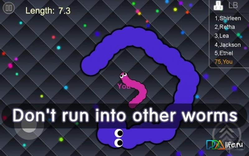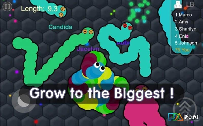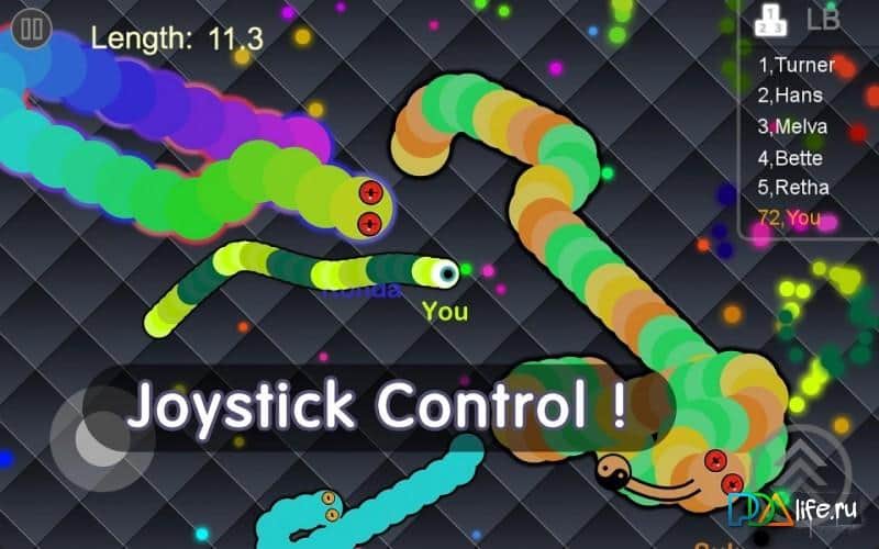 Crawl Snake – управляйте яркой змейкой и путешествуйте по опасному миру игры. В этой игре вы окажитесь на поле, заполненном многочисленными змейками, которые будут являться вашими соперниками. Цель этой игры очень проста вам необходимо поедать яркие точки и становиться больше, при этом избегать столкновения с другими змейками большего размера, иначе они вас съедят. Контролируйте перемещение по полю своей змейки и избегайте столкновений с многочисленными соперниками, а также не забывайте кормить свою змейку и увеличиваться в размерах. Примеряйте для своей змейки различные раскраски и поднимайтесь на самый верх таблицы лидеров.