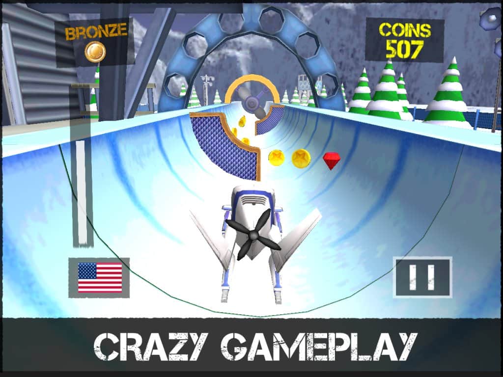 Crazy Bobsleigh: Sochi 2014 - Простенький аркадный раннер на андроид, который продолжает тематику олимпиады Сочи 2014. На этот раз у нас бобслей. Но это не скучное однообразие по ледяным трассам, тут все намного интересней! Катайтесь, собирайте монеты и сердечки, и сворачивайте от заграждений, и крутящихся лопастей вентиляторов. По сути эта игра – обычный раннер с простенькой графикой, который перенесен на лед.