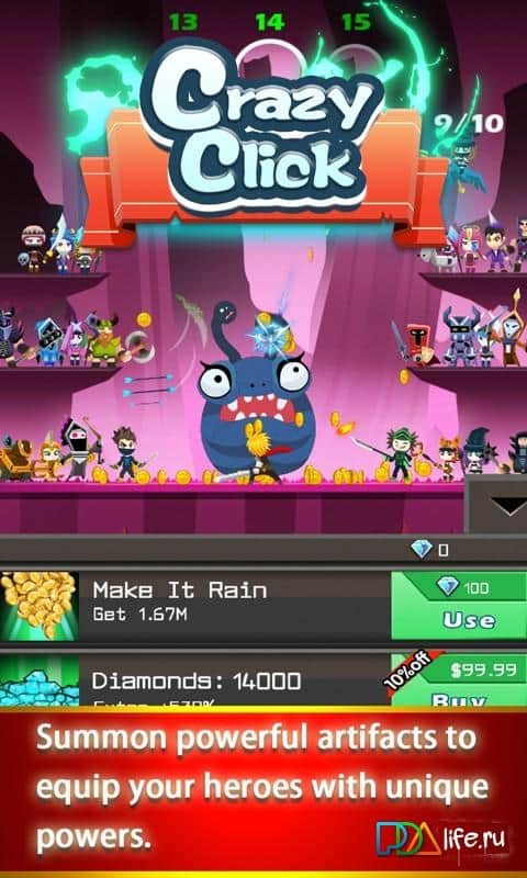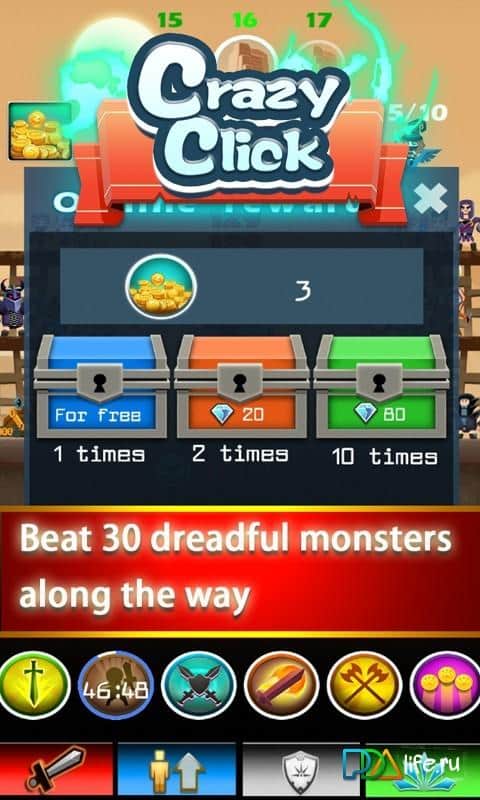 Развитие мобильных устройств и рост мощности смартфонов и планшетов позволил разработчикам создавать мобильные игровые проекты не уступающие топовым играм с настольных платформ. Однако до сих пор основной задачей мобильных игр является возможность скоротать свободное время. От того такие жанры как головоломки из серии три в ряд, аркадные платформеры, хардкорные аркады и конечно же кликкеры все так же популярны и востребованы. Crazy Click - действительно качественный кликкер с отличной графикой, классическим игровым процессом и массой приятных дополнений. Создатели данной игры взяли за основу популярную игровую механику, все что от вас потребуется это быстро тапать по экрану и собирать монетки, а потом на заработанные бонусы улучшать персонажа и так до бесконечности. Но стоит отметить широкие возможности для улучшения, что придает игре еще большую увлекательность.