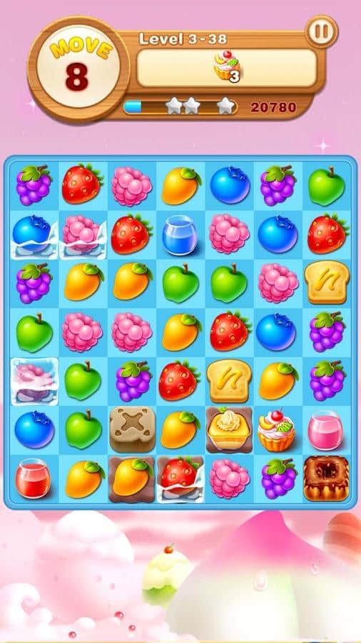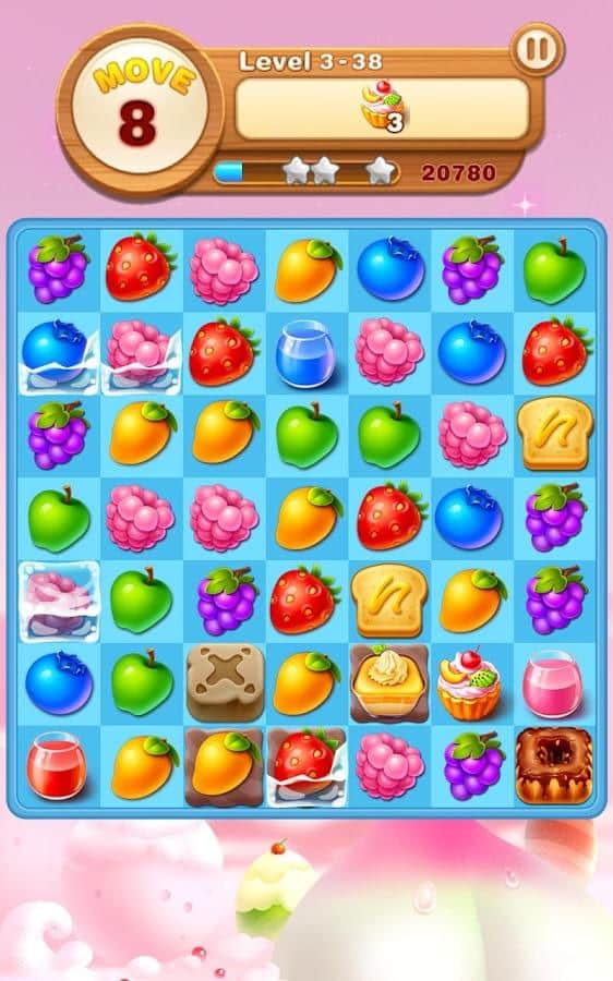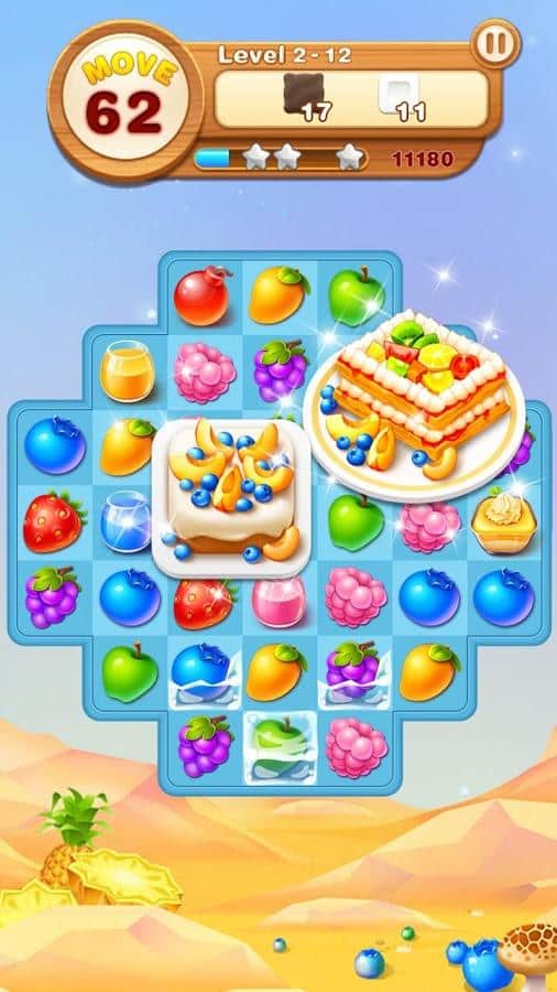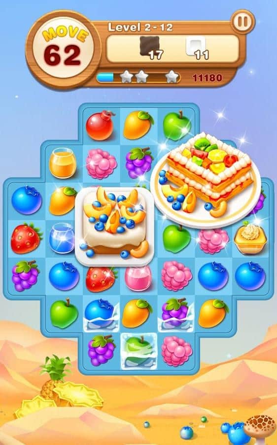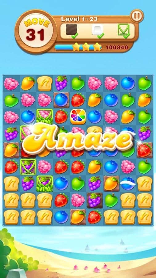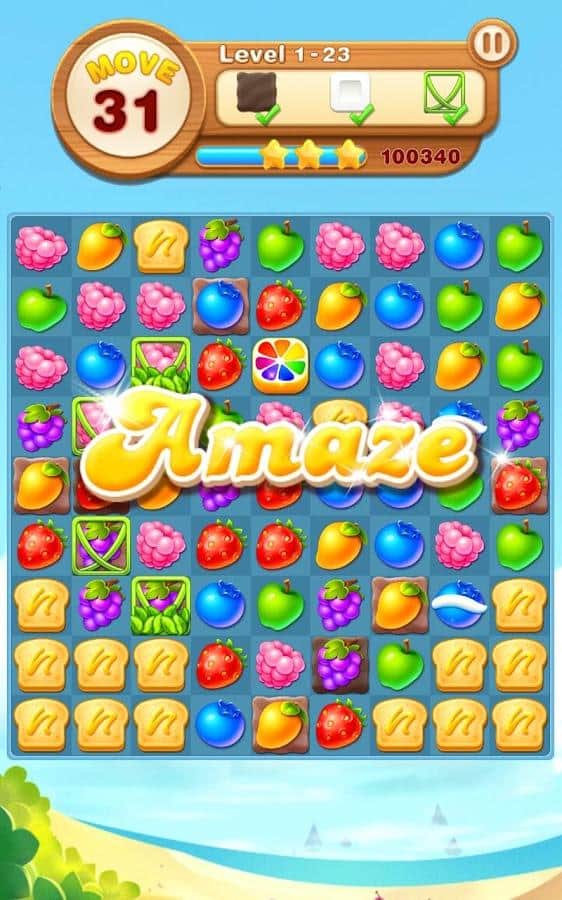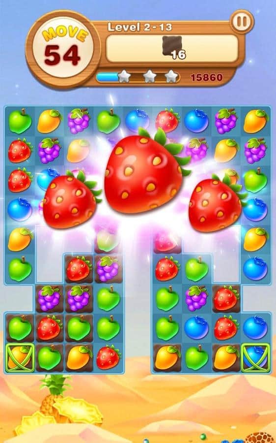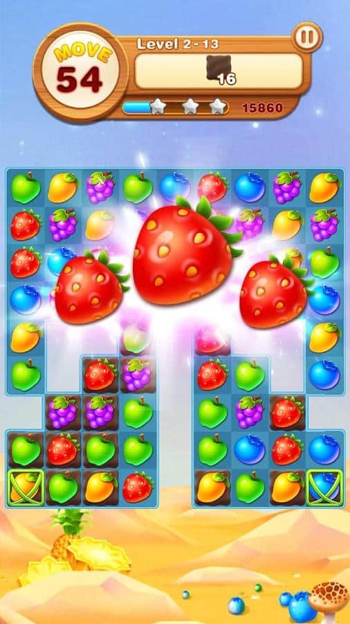 Crazy Fruit – игра на андроид, из жанра три в ряд, где вы отпаритесь в путешествие по фруктовой стране. Вашей задачей будет составлять по три и более одинаковых по цвету фруктов в ряд и взрывать их. Старайтесь составлять как можно длиннее цепочку из фруктов, чтобы запустить в действие цепную реакцию и взорвать как можно больше фруктов. Получайте в качестве награды различные усиления и проходите быстрее сложные уровни. Выполняйте все задания и миссии и проходите уровни за минимальное количество ходов, чтобы получить по три звезды на каждом уровне. Добивайтесь рекордных результатов и соревнуйтесь с друзьями. В игре вы найдете три неповторимые локации и 144 вкусных уровня.
