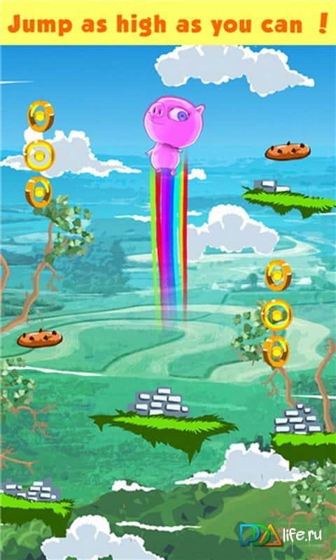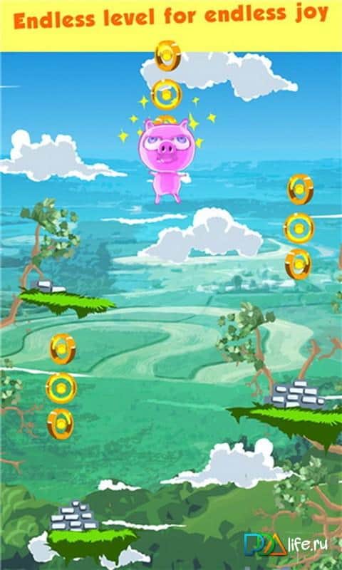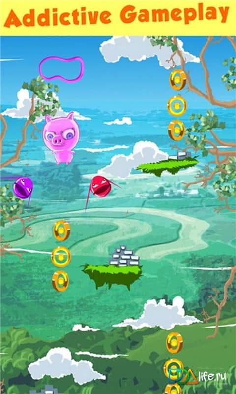 Crazy Piggy: Super Jump - веселый тайм-киллер для windows phone, в котором вы будете управлять розовым поросенком. Прыгайте по движущимся платформам все выше в небо и по пути собирайте монетки и бонусы, которые помогут вам получить сверх способности. Соревнуйтесь с вашими друзьями и ставите свои рекорды в прохождении этой игры.