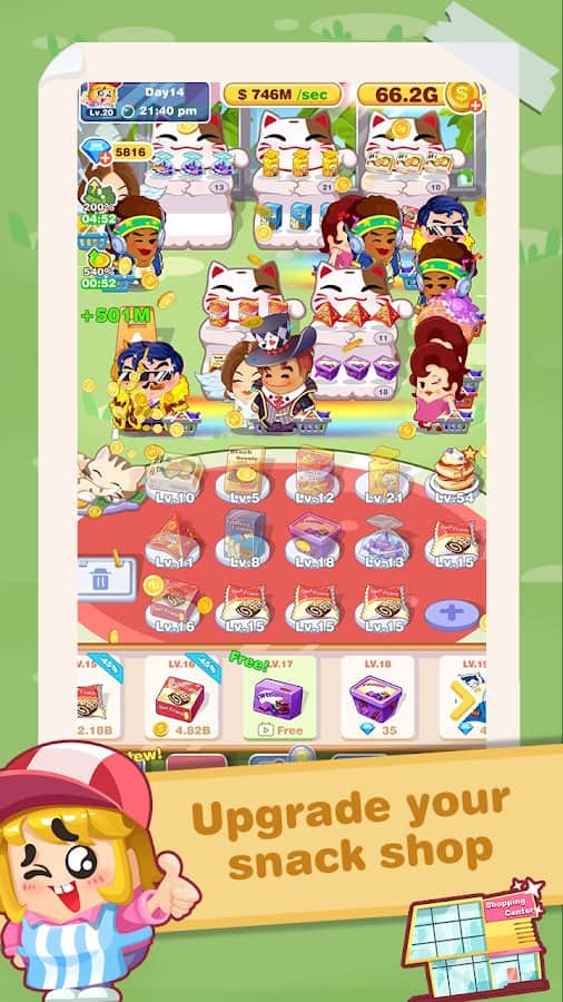 Crazy Snack 2 - Click&Merge – отличная игра на андроид, где вы будете выступать в роли кондитера. В этой игре вы будете создавать невероятные шедевры из обычных продуктов и радовать своих покупателей. Готовьте разнообразные и интересные кулинарные изделия и станьте выдающимся кондитером. Нанимайте на работу многочисленный персонал для своего кафе и приглашайте в него новых посетителей. Увеличивайте и расширяйте свое кафе и создавайте в нем уютную атмосферу что привлечет больше клиентов. Обновляйте свое меню и придумывайте новые рецепты и ингредиенты для пирогов и тортов.