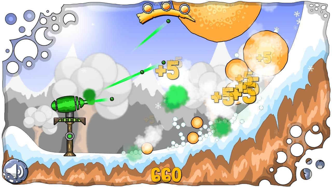 Crazy Snowballs - динамичная игра на андроид, которая перенесет вас в заснеженную сказку. В этой игре вашей главной задачей будет стрелять из башни по катящимся снежкам так, чтобы они не задели вас. Игра основана на физике и порадует вас многочисленными уровнями и бесконечными снежками. Не дайте огромным снежкам докатиться до вашей башни и разрушить ее. С каждым новым уровнем ваша задача будет усложняться, и таким образом вам все сложнее будет проходить уровни. Собирайте по три звезды на каждом уровне и улучшайте свою башню, а также после того как вы соберете три звезды все снежки станут золотыми.