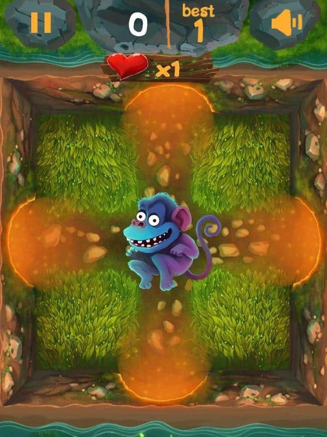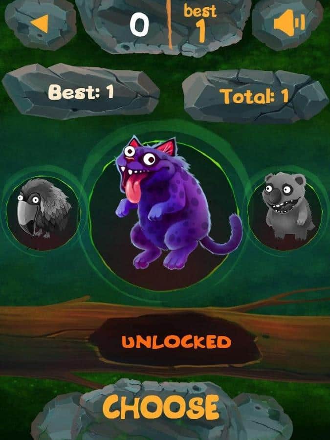 Crazymals – увлекательная игра на андроид, где вы будете помогать животным сбежать из джунглей. Опасный монстр живший долгое время под землей, вырвался на свободу и грозить всем животным, обитающим в джунглях расправой. Как только монстр выбрался на свободу, в джунглях случился потоп. И теперь вашей задачей будет перемещаться по лесу, убегая от преследующего вас монстра и избегать потопа. Перемещайтесь по специальным ячейкам и прокладывайте себе верный путь, чтобы не столкнуться с острыми клыками монстра. Покажите на деле свою отличную реакцию и набирайте достаточное количество очков, чтобы открыть новых героев. Получайте награды и достижения и соревнуйтесь с друзьями за лучшие результаты.