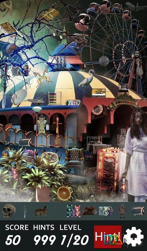 Creepy Carnival - игра по поиску предметов с жуткими сценами карнавала. В ваш город приехал карнавал, но вместо веселья он у вас вызывает только ужас и страх. В этих 20 сценах вам предстоит искать скрытые предметы, которые изменяются каждый раз, когда вы начинаете игру заново. В этой игре вас ждут 4 способа поиска предметов: найти предметы на картинках, искать предметы по силуэтам, по списку слов и случайный выбор вышеуказанных способов. Также выбирайте понравившийся режим игры, используйте подсказки и следите за мутантами и монстрами которые будут вас окружать.