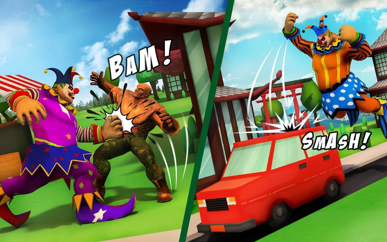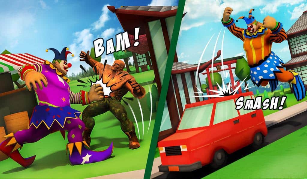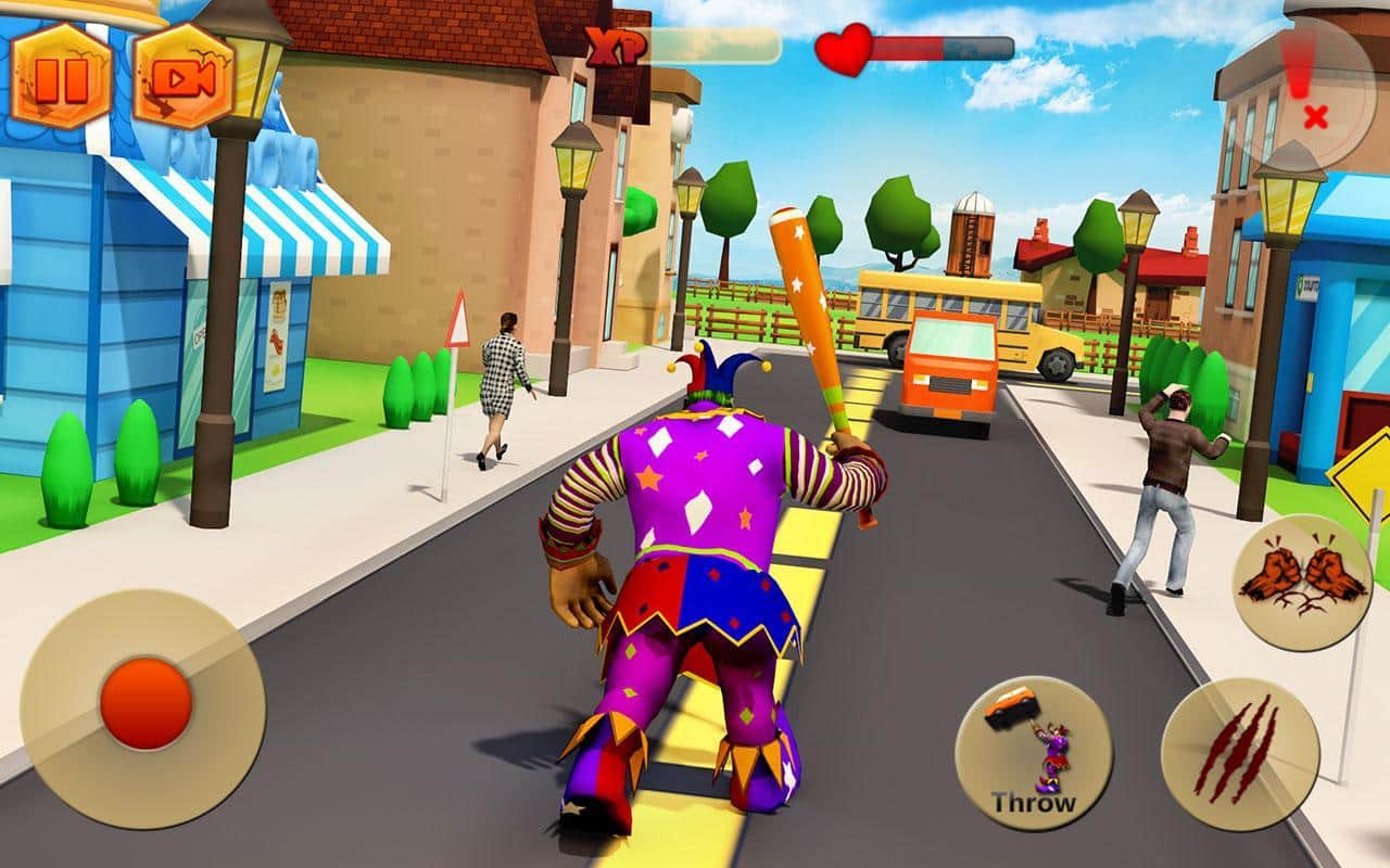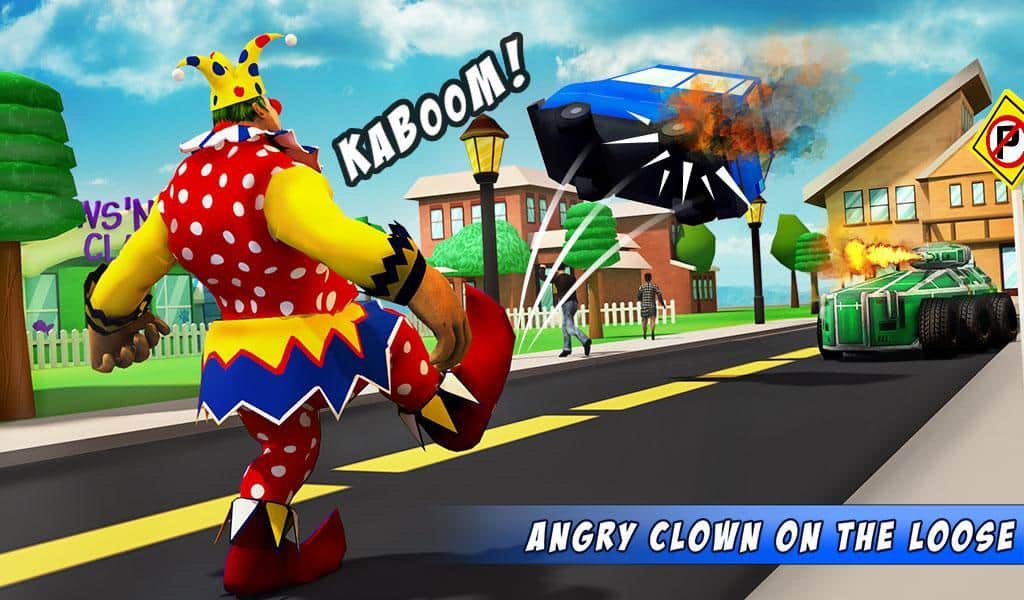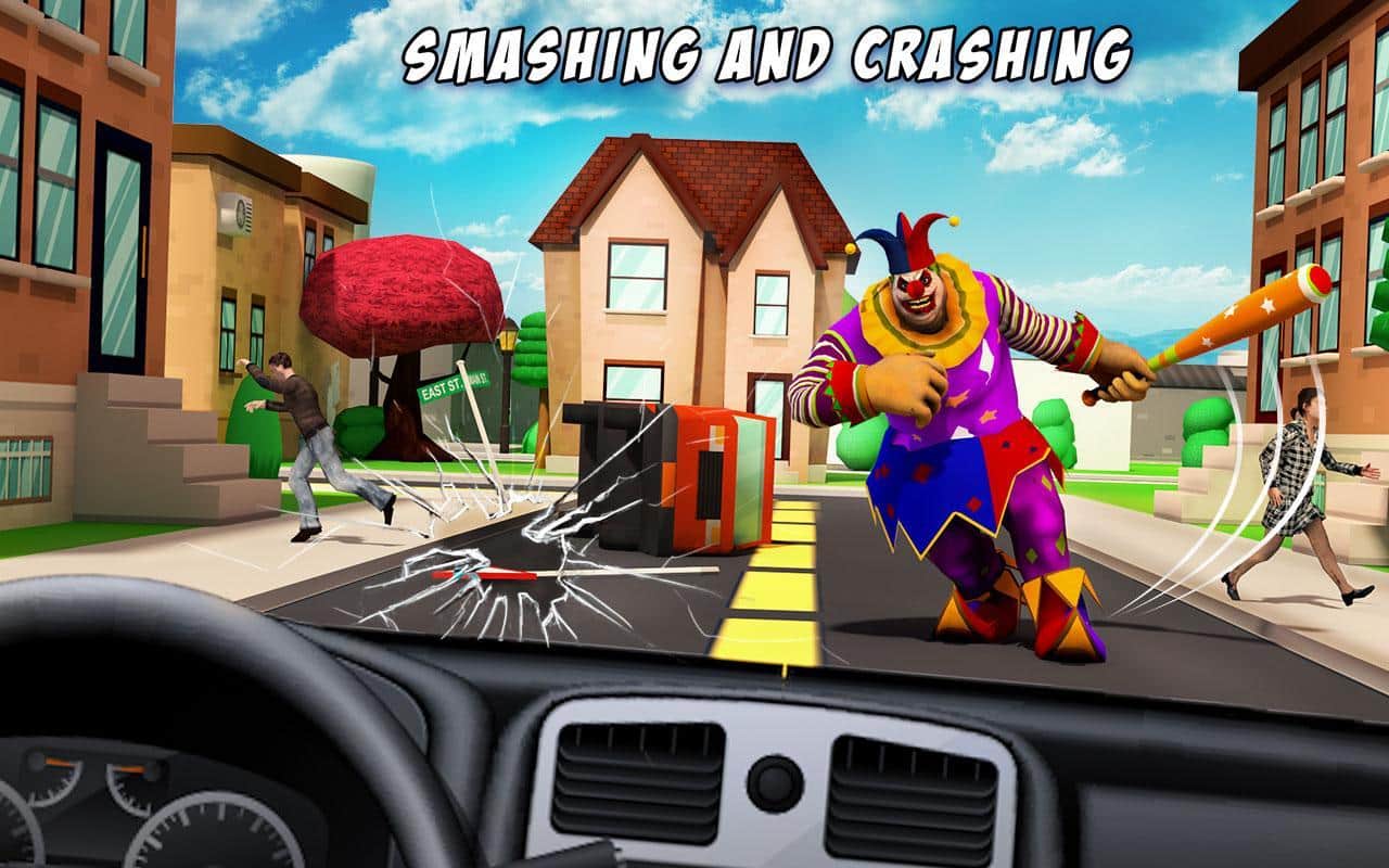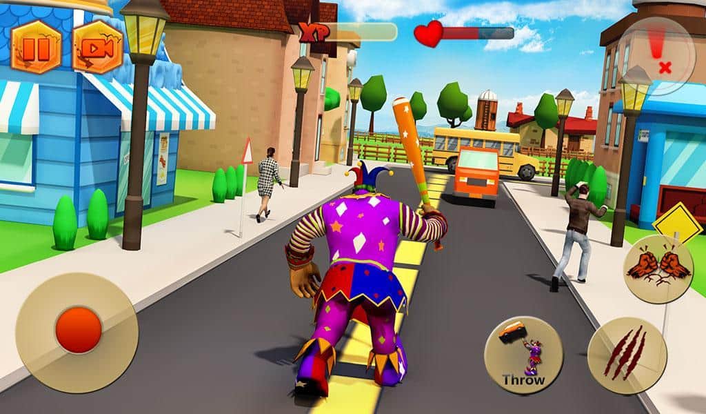 Creepy Clown Attack – управляйте огромный клоуном, который перемещается по улицам города и крушить все вокруг. В этой игре вы возьмете под свой контроль клоуна, который перемещается по огромному мегаполису и уничтожает все на своем пути. Наш клоун обладает недюжинной силой и может с одного удара битой перевернуть машину. Погрузите огромный мегаполис в хаос и выполняйте многочисленные сложные задания и миссии. Нападайте на полицейские машины и других противников, которые хотят вас остановить и уничтожайте их. Крушите все на своем пути и заставляйте прохожих с криками убегать от вас. Одевайте своего клоуна в различные костюмы.