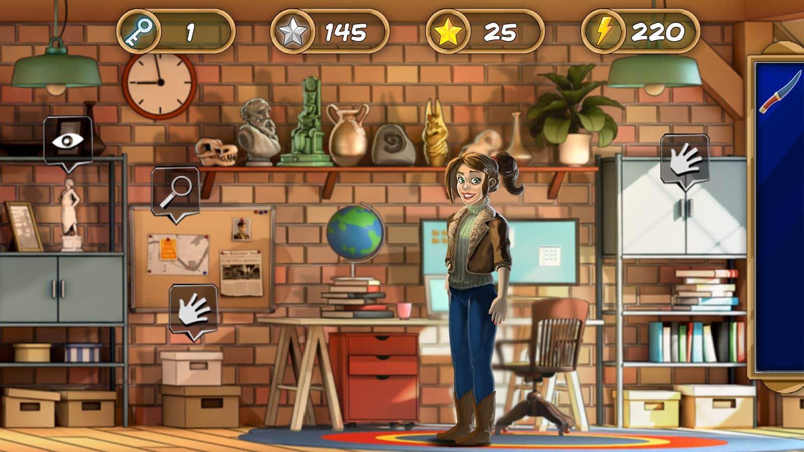 Crime Time: Detective Mystery - Жизнь частного детектива всегда насыщена многочисленными событиями, которые необходимо тщательно расследовать, чтобы не допускать любые ошибки. Далекое путешествие Лизы Фокс будет происходить в определенных местах, например храмах Южной Америки, где каждая раскрытая история приближает главную героиню к находке потерянной любви. Решая загадки и проходя головоломки, вы автоматически будете получать вознаграждения, среди каких открытие доступа к новым интересным историям, наполненных неизвестностью.