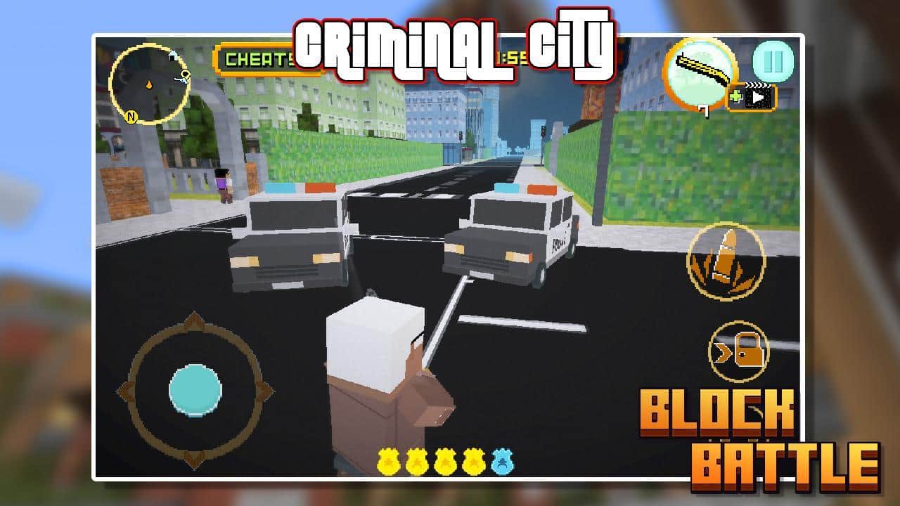 Criminal City: Block Battle – возьмите под свой контроль героя который хочет в одиночку захватить власть во всем городе. Управляйте героем и перемещайтесь по многочисленным улицам города, совершая грабежи и угоны автомобилей. Постройте свою криминальную империю и участвуйте в бесконечных войнах с другими бандами. Для перестрелки с полицией и бандитами используйте самое разнообразное оружие, начиная от пистолетов и заканчивая винтовками и автоматами. Угоняйте обычные автомобили, а также прокатитесь на танке и вертолете. Удачно выполняйте поставленные миссии и уходите от погони. На заработанные деньги вы сможете поменять внешний вид своего героя.