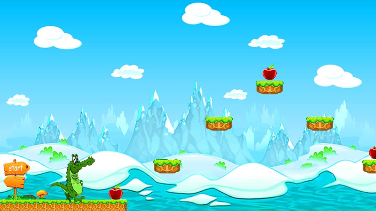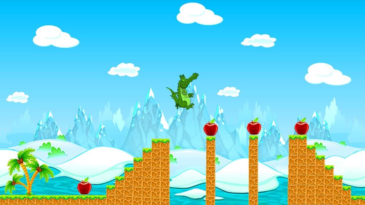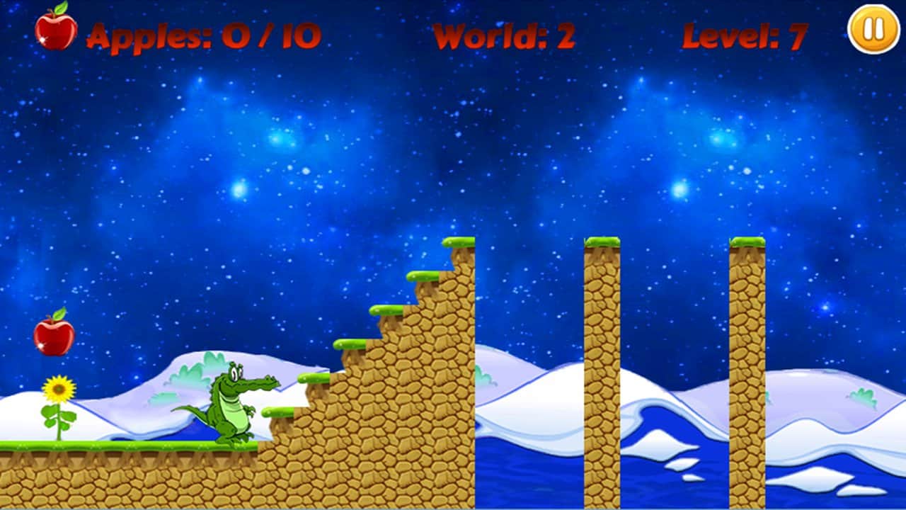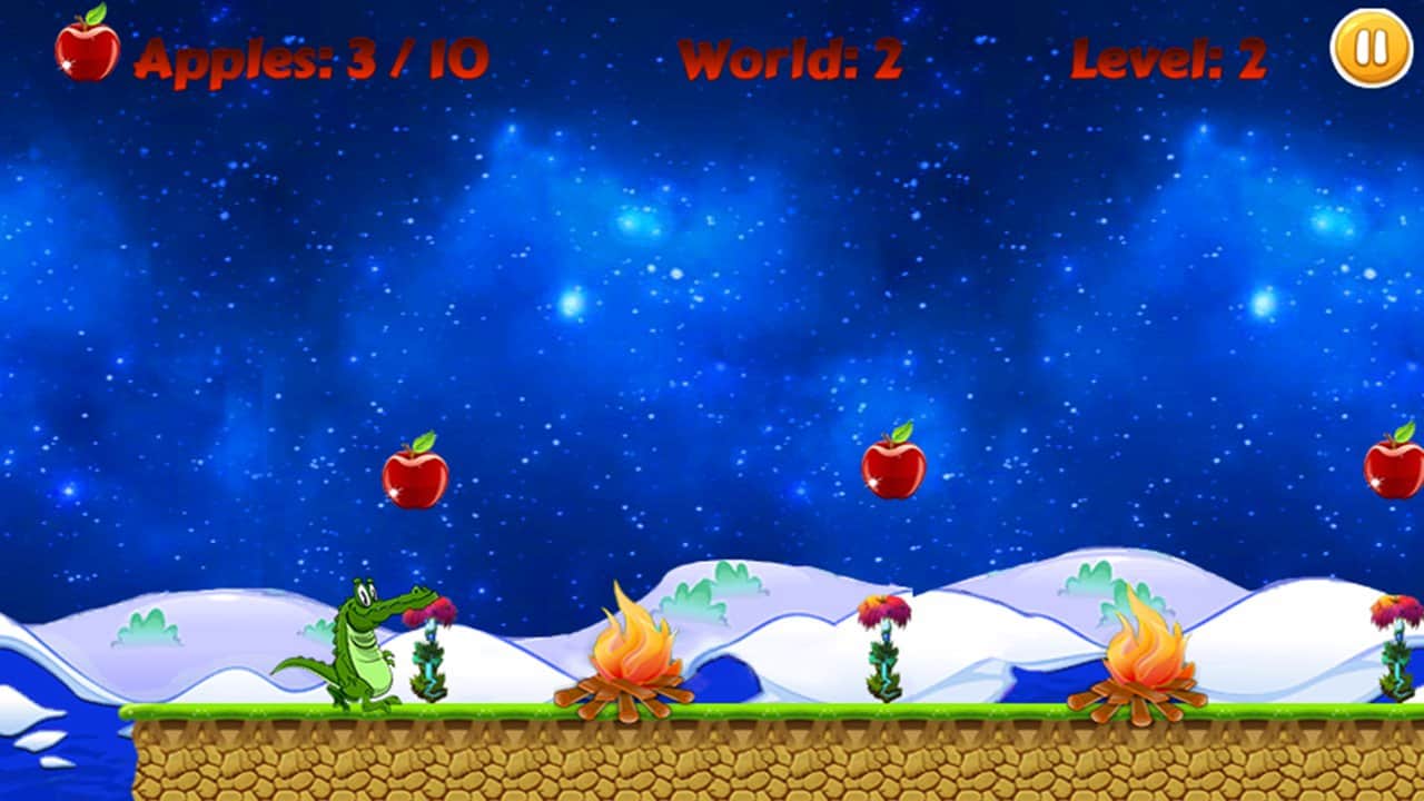 Crocodile Run – яркий и красочный раннер, в котором вам предстоит бегать крокодилом, собирать яблоки. Крокодил очень голоден поэтому спелые яблочки как раз будут кстати. На пути у вас будут много пропастей и препятствий, их непременно нужно избегать. Управление простое, просто нажмите на экран, и ваш персонаж совершит прыжок. Приятной игры!