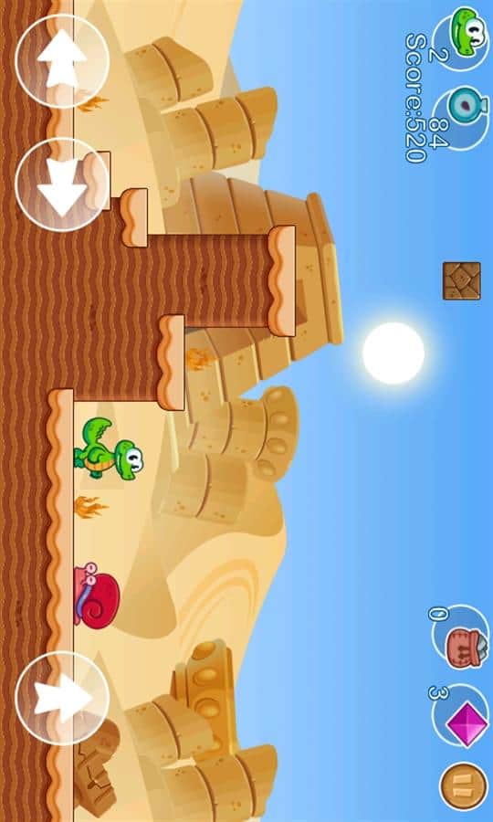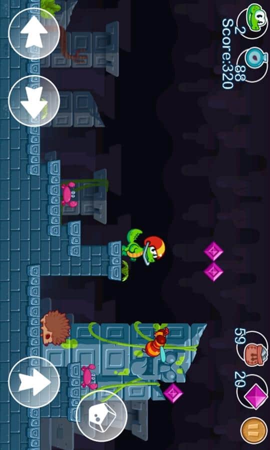 Crocs World - платформер где вам предстоит управлять веселым крокодильчиком. Бегаем, прыгаем и уворачиваемся от бесконечных врагов, а также не забываем собирать драгоценные камни и дополнительные бонусы в виде шлема. За каждые 100 собранных алмазов вы будет получать дополнительные жизни. Эта игра порадует вас отличной яркой графикой и 4 различными темами, а также 60 забавными уровнями и многочисленными и разнообразными врагами.