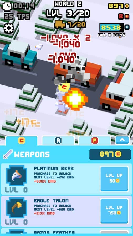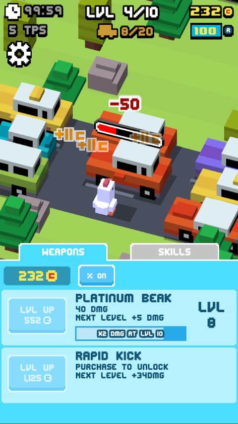 Crossy Road Rage – управляйте цыпленком, который с помощью своего клюва может уничтожить все преграды на пути. Ведите своего цыпленка вперед и разрушайте вставшие на вашем пути машины с помощью мощного клюва, нажимая на экран как можно чаще. Перепрыгивайте водные преграды и дороги. Ваш цыпленок может разрушить любую машину только нужно приложить больше силы и терпения. Главными особенностями игры является забавный герой, простое и понятное управление, многочисленные усиления и бонусы, а также таблица лидеров и забавный игровой процесс.