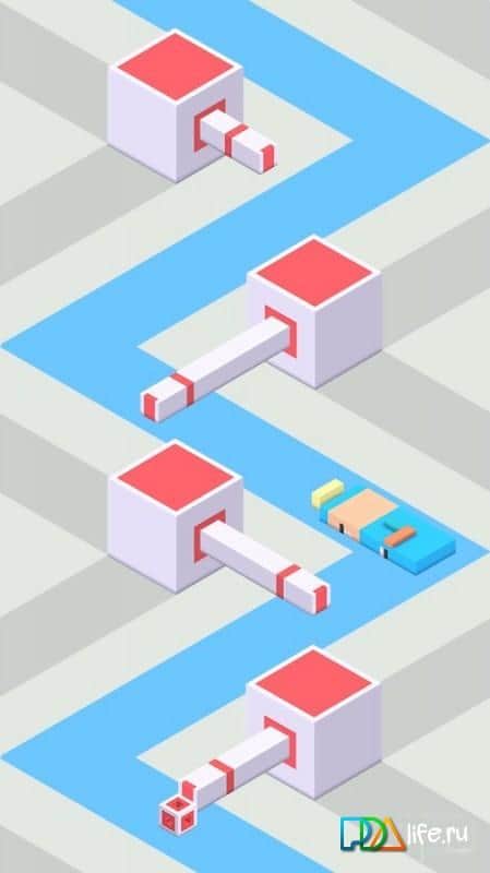 Crossy Ziggy - Простая, и очень увлекательная аркада про маленького человечка, задание которого добраться как можно дальше в глубь уровня. У вас очень простое задание, просто тапать по экрану в нужный момент. Однако не все так просто, ведь вам будут мешать автоматические поршни, которые будут закрывать вам проход. И чем дальше вы будете проходить, тем сложнее будет уровень. Все ваши препятствия, начнут двигаться с разной скорость, а помимо этого ещё начнет двигаться и их основа. Так что вам придется изрядно попотеть, что бы быстро, а главное правильно рассчитать время нажатия, что бы пройти мимо препятствий.