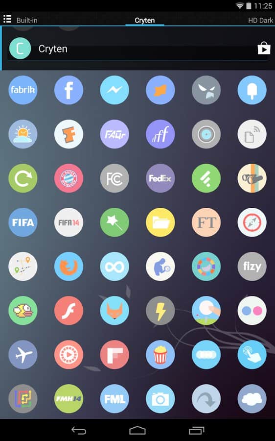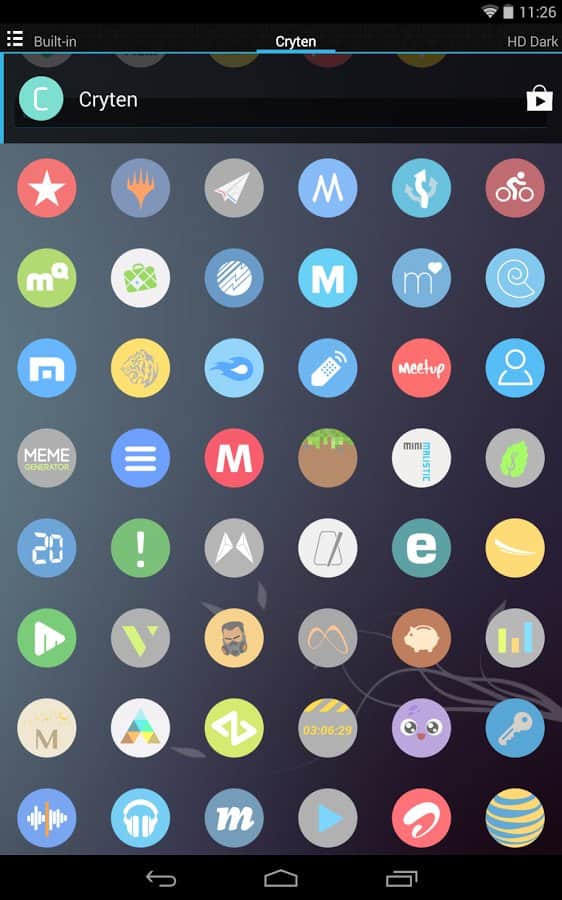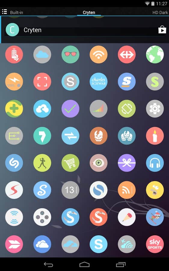 Cryten - Icon Pack - ещё одна сборка иконок и обоев от Vertumus, для вас. Здесь иконки и обои абсолютно новые, и не похожи та те, которые были в других сборках. Новый дизайн и утонченные линии иконок просто завораживают, они исполнены в прекрасном стиле и высоком качестве, так же как и обои в данном приложении, прекрасно дополняя друг друга. Установив их на свой девайс, вы не пожалеете, ведь на данный момент, эта сборка, является одной из лучших.