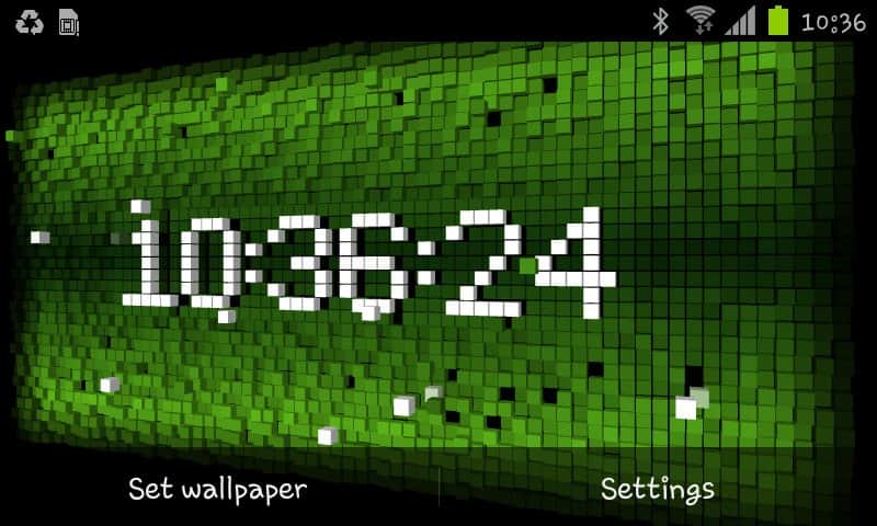Cube City 3D Pro живые обои на андроид от разработчика fossor coding, представляют из себя многочисленные кубики, которые образуют собой время на экране вашего смартфона/планшета, все время перемещаясь с места на место, а так же реагируют на ваше прикосновение. Обои содержат различные цветовые темы и смену индивидуальных цветов.