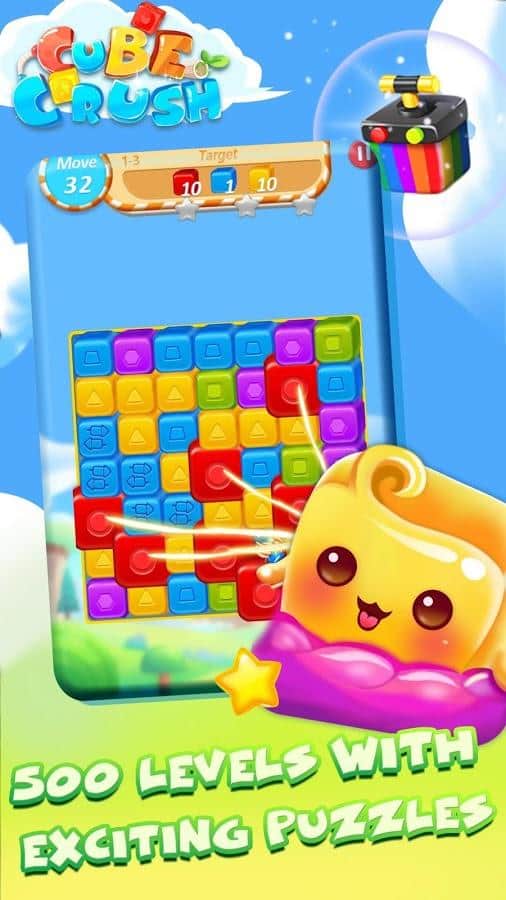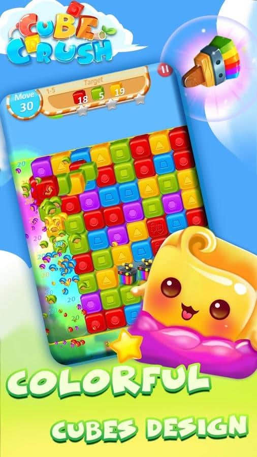 Cube Crush: Collapse & Blast Game – захватывающая игра из жанра три в ряд на андроид, где вы будете путешествовать по ярким уровням. В этой игре вашей главной задачей будет составлять ряды из трех и более кубиков одного цвета и взрывать их. Выискивайте группы из кубиков одного цвета и старайтесь взорвать их получая в награду очки и бонусы. Расположенные на игровом поле бомбы, ракеты и другие усиления также позволят вам быстрее проходить уровни игры. Получайте по три звезды на каждом уровне и открывайте новые. Поднимайтесь все выше в таблице лидеров и устанавливайте свои рекорды.