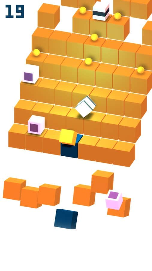 Cube Roll – увлекательная игра на андроид, где вам предстоит управлять движением кубика. Перемещайте кубик по многочисленным платформам и обходите все преграды на своем пути. Поднимите свой кубик как можно выше и торопитесь, чтобы не упасть в пропасть и не угодить в ловушку. По пути собирайте все желтые шарики, которые помогут вам открыть новые кубики, обладающие уникальным дизайном. Покажите на деле свою наблюдательность и отличную реакцию, которая поможет вам быстрее пройти все уровни и установить свой рекорд в этой игре. Игра порадует вас простым управлением, отличной графикой и 15 видами различных кубиков.