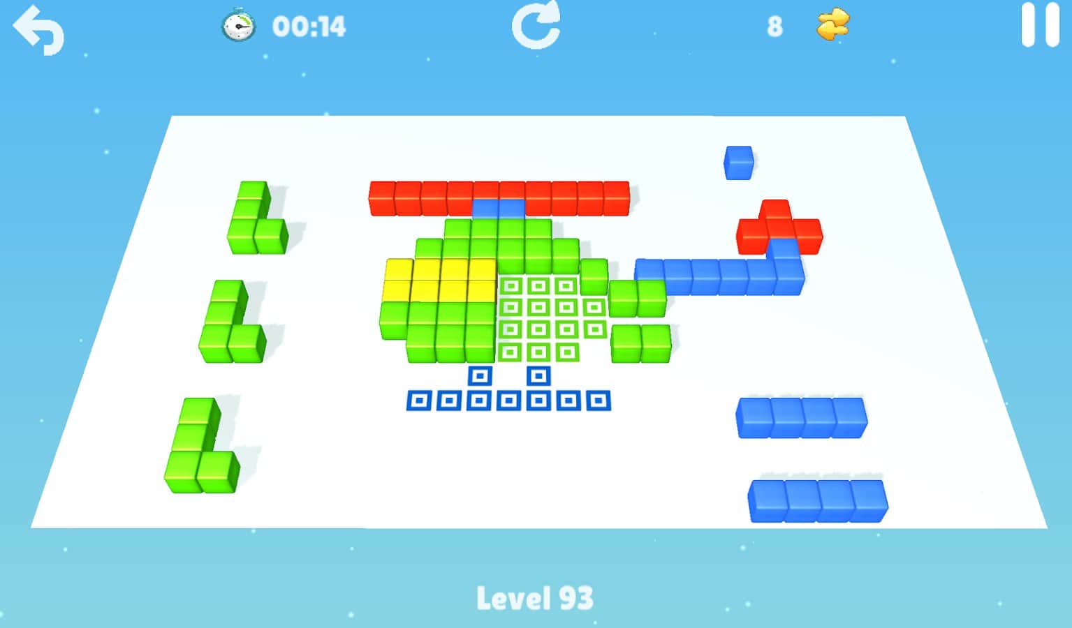 заполнить, перемещайте кубики так, чтобы они стукались об другие кубики, о