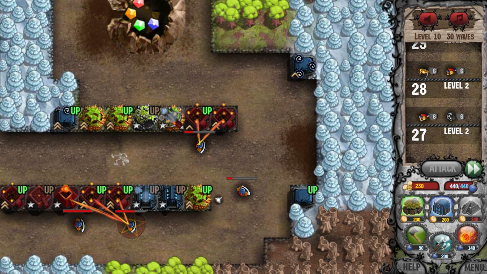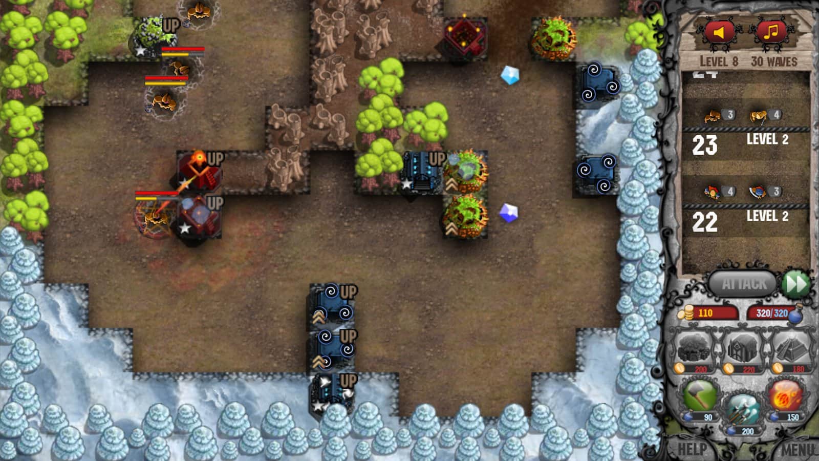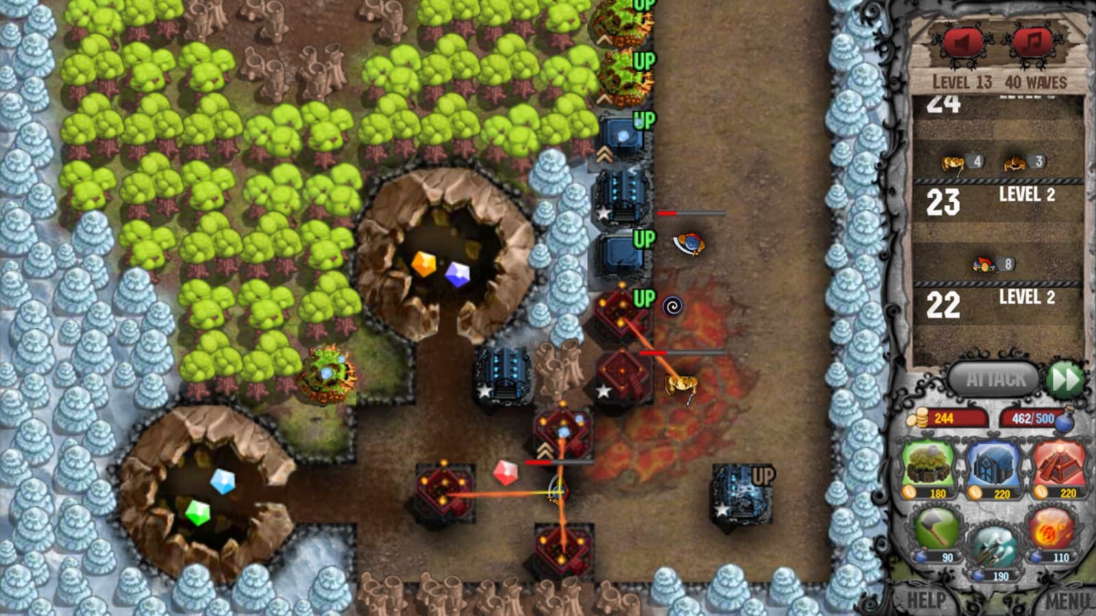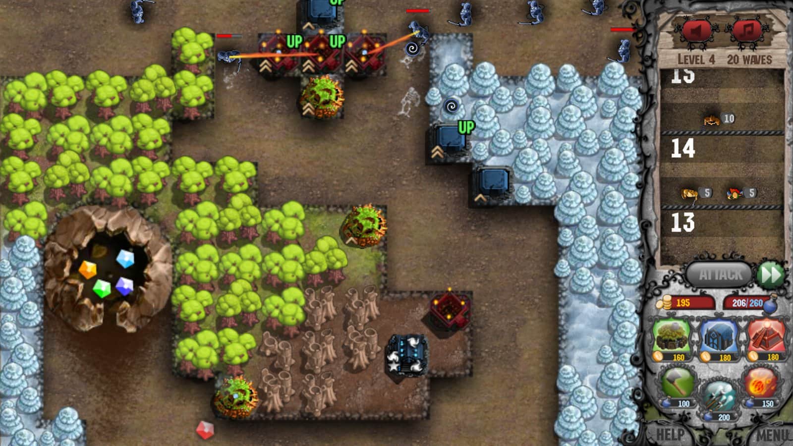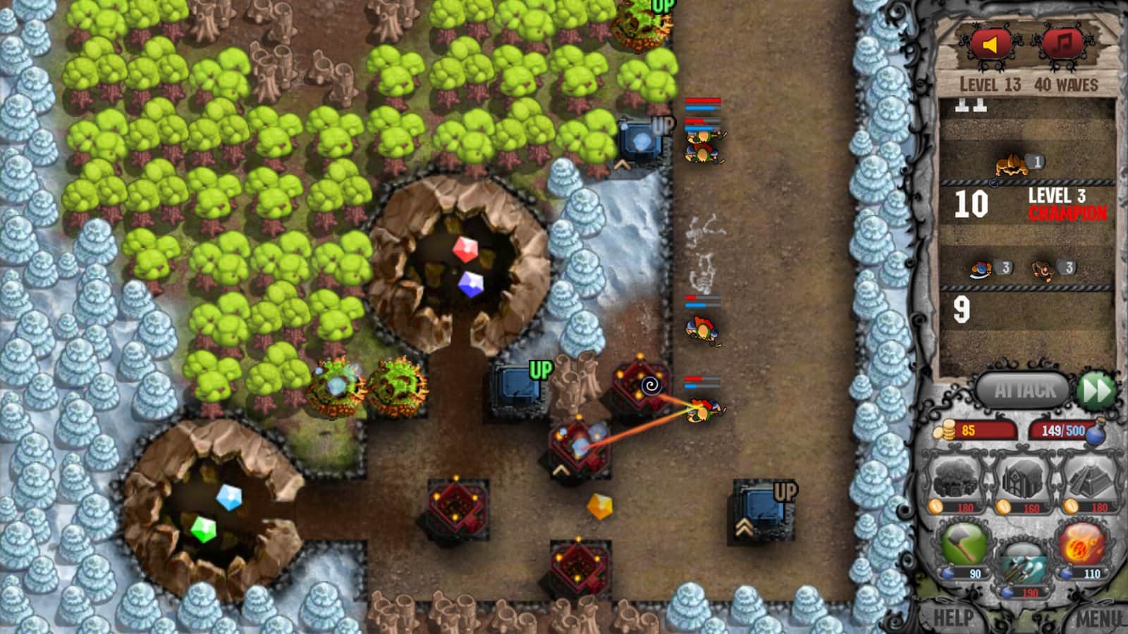 Cursed Treasure - Dont Touch My Gems – игра в которой вам предстоит играть по сути классический tower defense. Безжалостный повелитель которой владеет мощной силой орков, нежити и демонов, под вашим командованием башни могут нанести сокрушительный урон. Вы упорно трудились, чтобы собрать свой добытый нечестным усиление, но волна за волной самозваных героев хочет принять ваши драгоценные камни. Грамотно установите башни и уничтожайте героев.