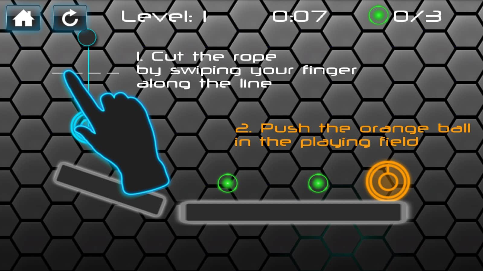 Cut and Push Full - игра головоломка на андроид, основанная на законах физики. На каждом уровне вам необходимо обрезать веревочки так чтобы сбить оранжевые шары и собрать как можно больше бонусных зеленых шаров. С каждым уровней сложность будет расти и вам придется изрядно поломать голову чтобы пройти их все, а их в игре более 80. Играйте в игру и наслаждайтесь отличной физикой движения и приятной футуристической графикой.