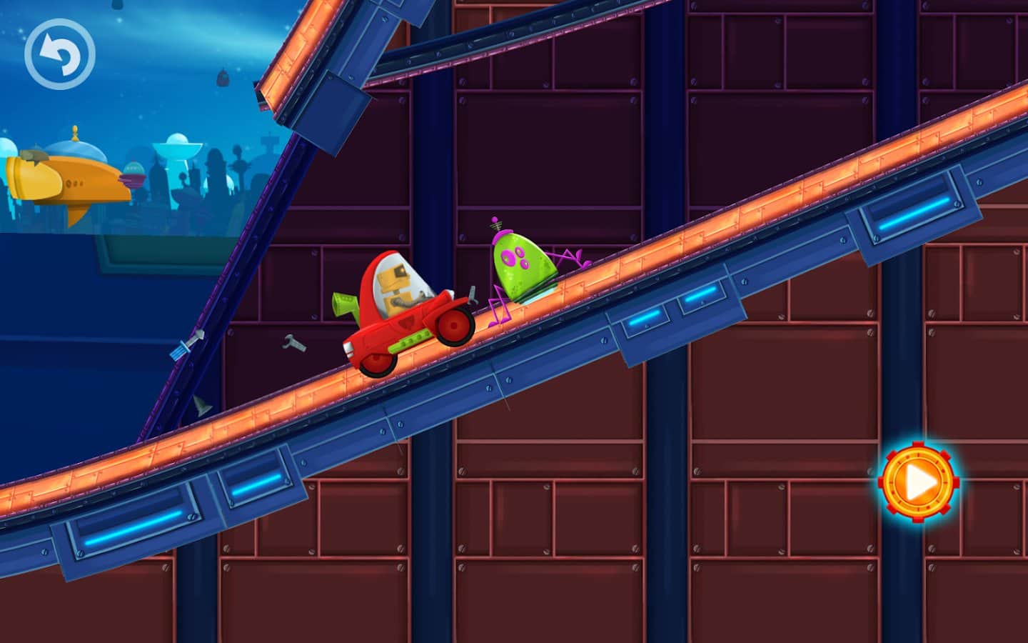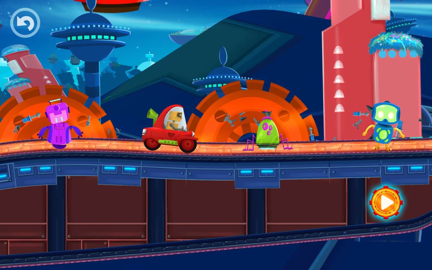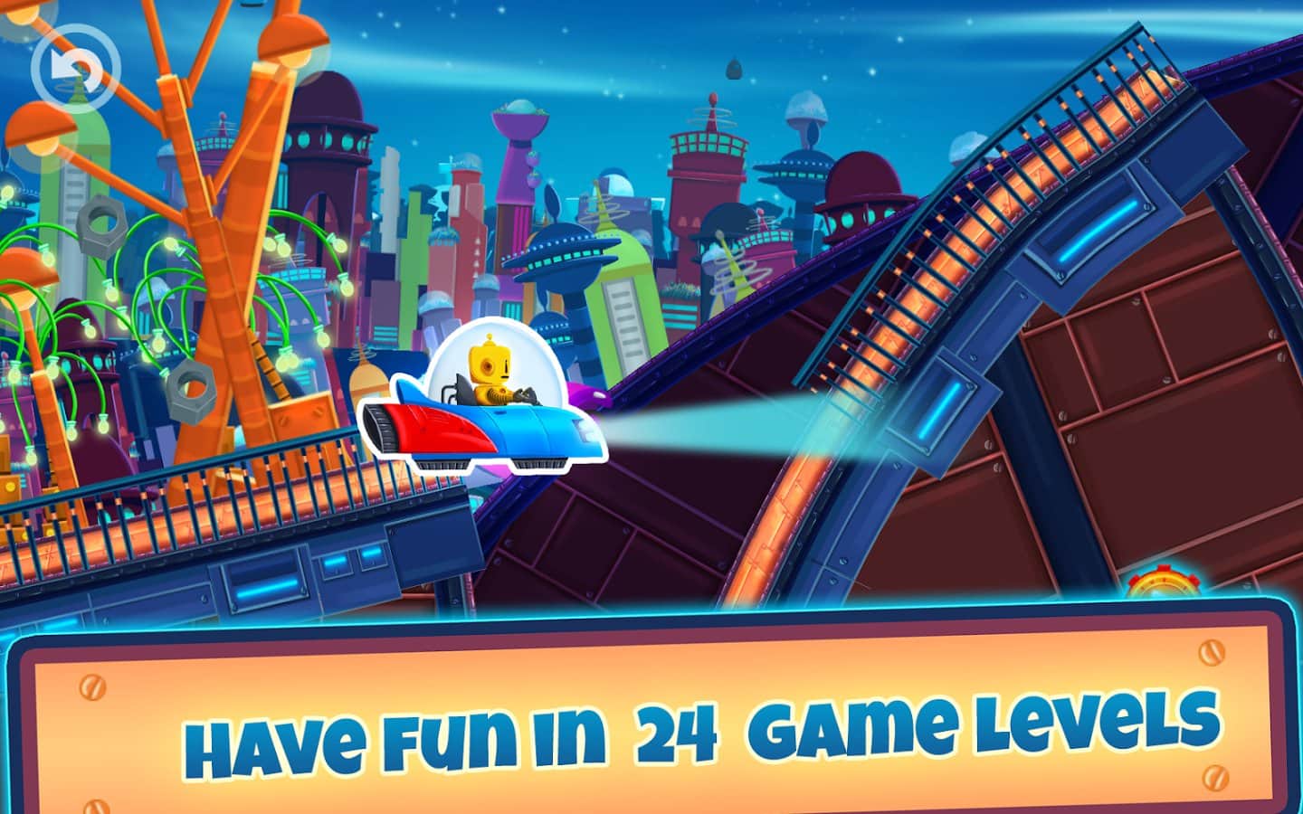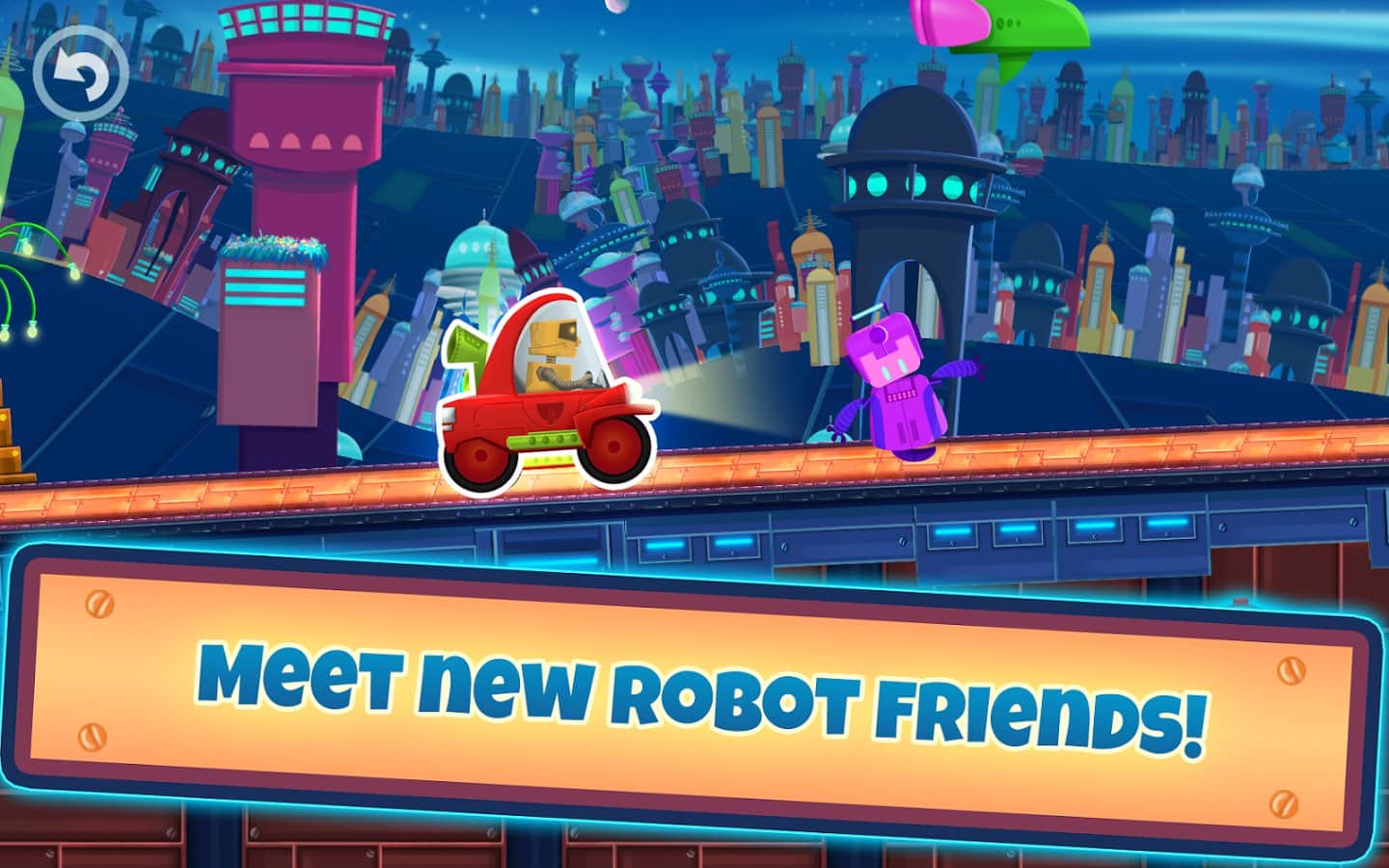 Cute Robot Car Racing – интересная игра которая подойдет как детям так и взрослым. В этой игре вы возьмете под свой контроль забавного робота, который путешествует по далекой планете на своем автомобиле. Помогите роботу пройти все трассы этой игры и не угодить не в одну ловушку, избегая все препятствия на пути. Разгоняйте свой автомобиль или наоборот замедляйте его с помощью одного прикосновения пальца к экрану. Путешествуйте по огромному мегаполису и познакомьтесь с новыми друзьями, которые повстречаются вам на пути. Придите к финишу и откройте новые увлекательные уровни. В игре вы найдете 2 удивительных мира, 24 неповторимых уровня и 4 автомобиля.