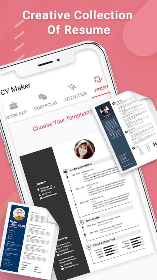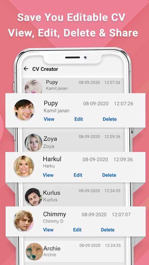CV & Resume - Maker & Creator - приложение поможет вам создать профессиональное резюме а функция добавления фотографий в него сможет под ключ сделать всю работу за несколько минут. Программа сохраняет ваше резюме как в формате PDF, так и в виде изображения. Просто напишите информацию про себя, а мы создадим для вас профессиональное резюме без хлопот и проблем.