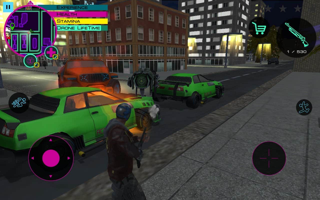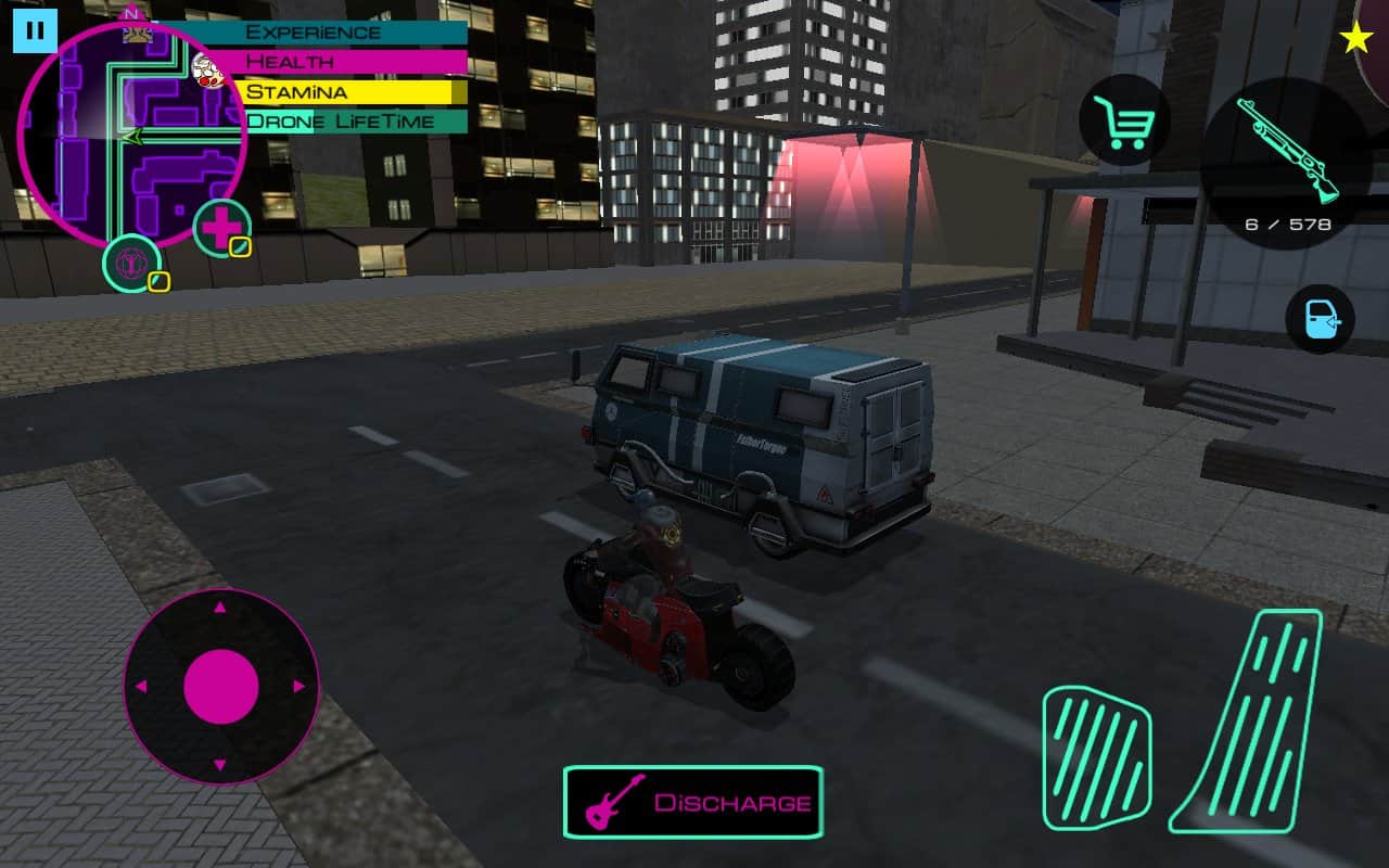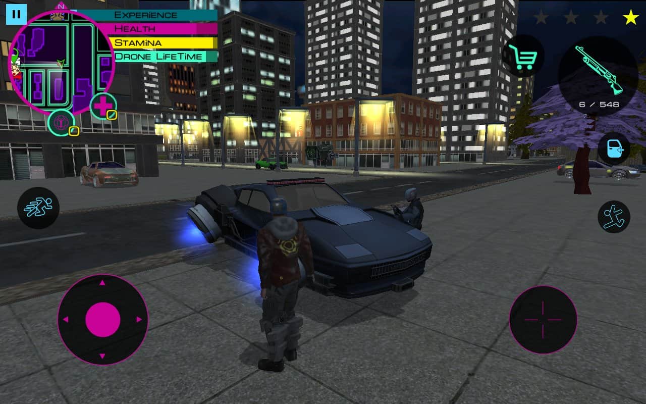 Cyber Future Crime – увлекательный экшен на андроид, где вы перенесетесь в футуристический киберпанк город. В этом городе конкурирующие группировки каждую ночь выходят на улицы города чтобы вступить в бой с противниками. В городе вы встретите летающие тачки, разнообразных роботов и бандитов. Исследуйте город полный неоновых красок и опасных врагов. Выполняйте многочисленные квесты и задания игры и разрушайте уличное окружение. Используйте новые технологии и прокачивайте своего воина делая его более сильным и выносливым. Выживайте в схватках банд и откройте для себя теневой город полный приключений.