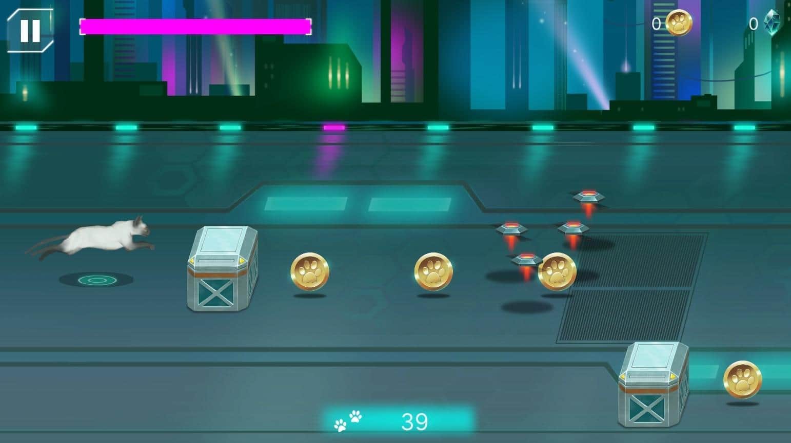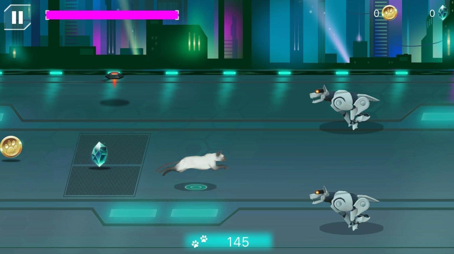 Cybercat: Space Runner - горизонтальный ранер выполненный в фантастическом стиле. И так, вам предстоит управляя кибернетическим котом преодолевать локации которые буквально кишат различными ловушками и врагами, при этом еще и выполняя разнообразные задания. Кроме этого разработчики подложили под игровую составляющую еще и полноценный сюжет, с которым вы познакомитесь по мере прохождения. Стилизованная графика и футуристический саунд-трек отлично передают атмосферу всего происходящего.