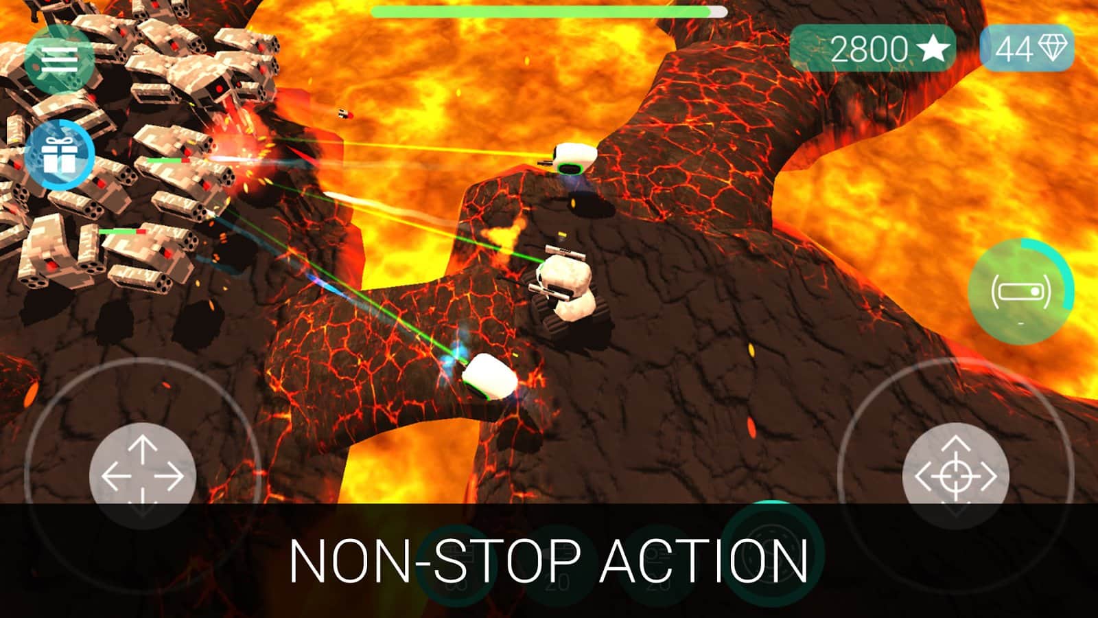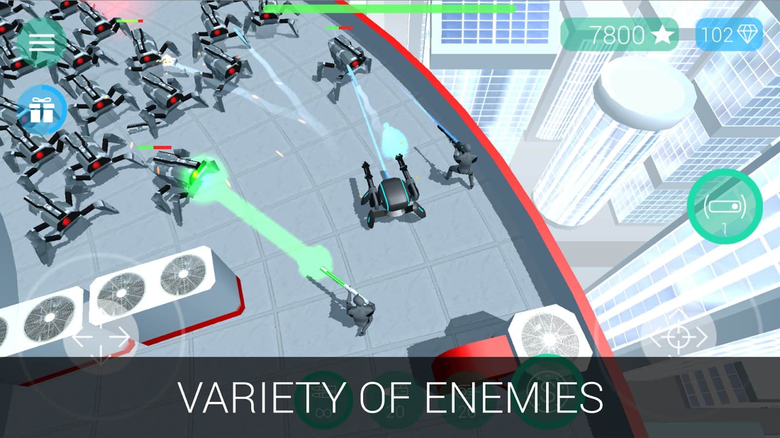 CyberSphere – шутер на андроид, где вы возьмите под свой контроль боевого дрона и защитите свою базу от захвата. Ваша база находиться на далекой планете и в один момент на нее напали орды роботов, вашей задачей будет уничтожить врагов и не дать им добраться до базы. Применяйте для уничтожения и защиты мощное оружие и перемещайтесь в разных направлениях, не давая врагам приблизиться к вам. Продержитесь как можно дольше, чтобы успеть передать ценную информацию на базу. Открывайте для своего дрона новое более мощное оружие и взрывайте надоедливых роботов. Особенностями игры является вид сверху, большое количество разнообразных врагов и большой арсенал оружие.