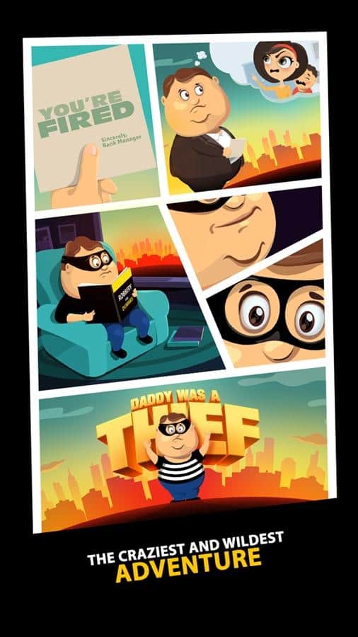 Daddy Was A Thief - захватывающая игра, в которой вам предстоит помочь грабителю скрыться от полиции. Наш грабитель это обычный человек, которого накануне уволили с работы и чтобы содержать семью он решается на преступление. Бегайте по крышам высотных здания и проникайте во внутрь, с помощью сверх способностей, а также избегайте врагов и собирайте монетки и бонусы. Так же у вас будет возможность улучшить вашего героя и изменить его внешний вид. Вас ждет большое количество разнообразных уровней и дополнительных бонусов.