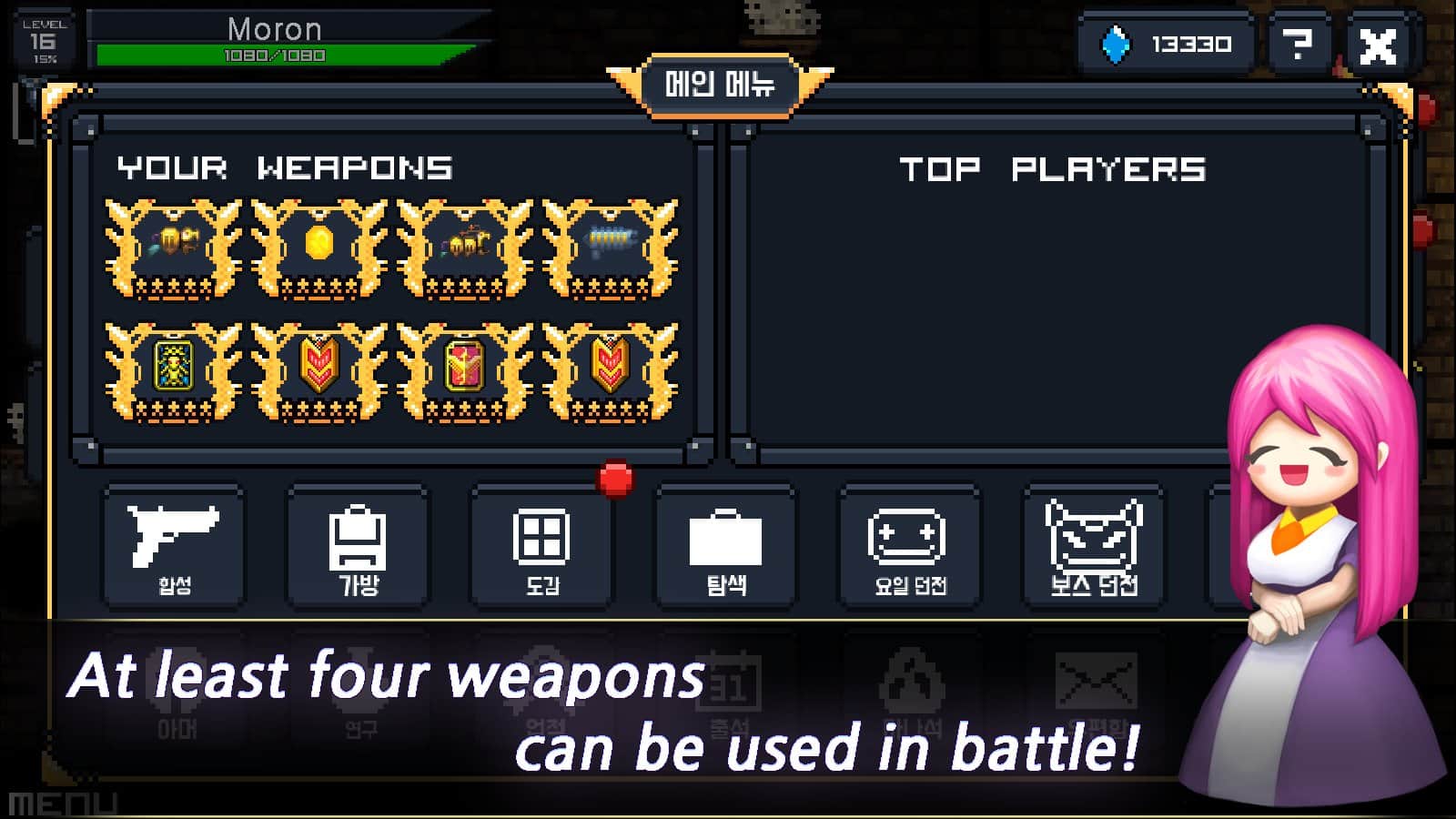 Daily Dungeon – Roguelike – занимательный пиксельный рогалик на андроид, где вы спуститесь в подземелье. Возьмите под свой контроль аватара и проведите его через многочисленные опасные приключения и битвы с врагами. Путешествуйте по неповторимому и постоянно меняющемуся миру и прокачивайте своего аватара готовя его к бою с сильным боссом. Получайте в награду за битвы новое оружие и щит и становитесь с каждым уровнем сильнее. В этой игре вам предстоит узнать историю принцессы, которая ушла из своего королевства. Вступайте в битву с сильным боссом, который будет поджидать вас в конце каждого уровня и выясните кто из вас сильнее.
