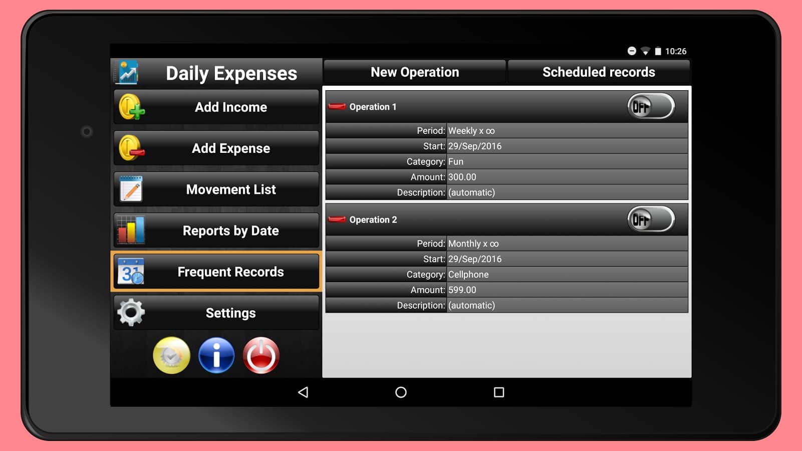 Daily Expenses 2 - Тратте свои деньги с умом, а это приложение вам в этом поможет. С его помощью вы сможете не только контролировать доходы и расходы в своем бюджете, но и систематизировать всё это. Говоря о систематизации, имеется ввиду что у вас будет целая книга своих финансов, с множеством небольших элементов. К примеру вы сможете задавать цели на расходы, а так же источники дохода, и всегда будете знать на что же вы тратите большую часть денег. Так же, в этом приложении очень просто разобраться, благодаря его простому и понятному интерфейсу.