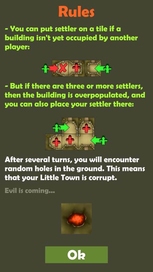 Damn Little Town – Увлекательная тактическая настольная игра на андроид рассчитанная для 1-4 игроков. Игра разделена на 2 этапа, в первом вам необходимо построить свой городок, а во втором необходимо бежать из города, который повреждён злом, которое разрастаются по всему периметру. Играть можно как с компьютером, так и с реальными игроками.