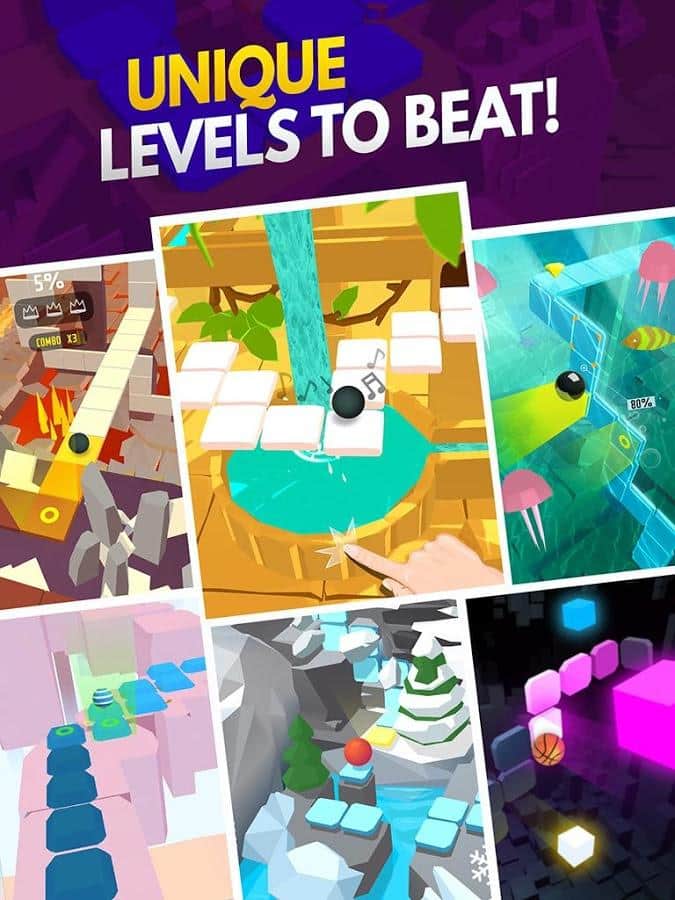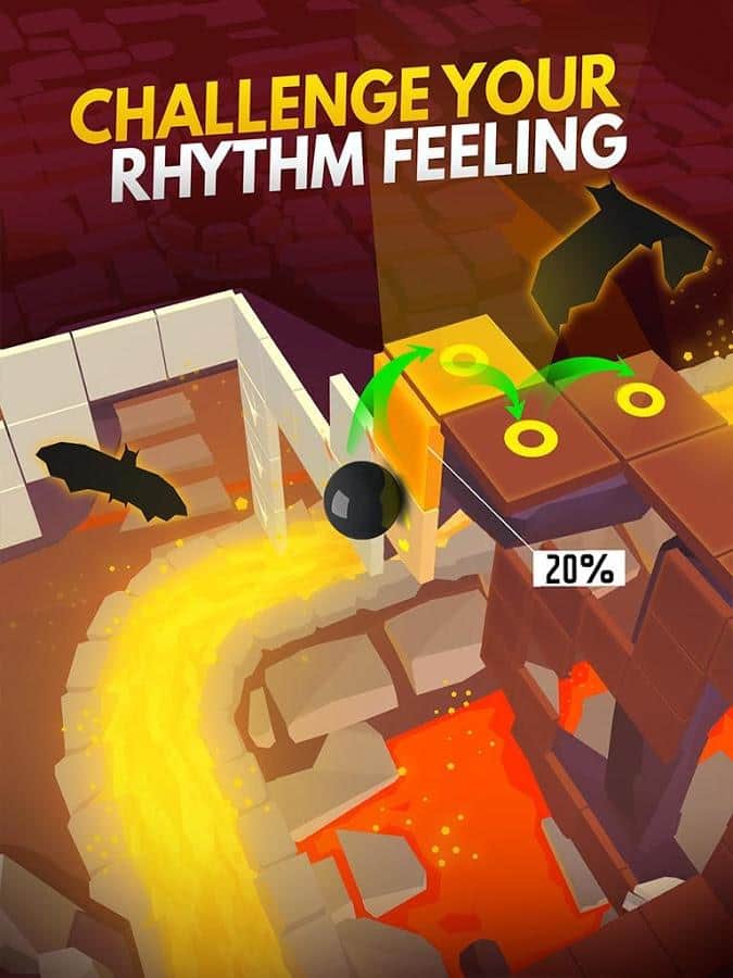 Minor bug fixes – отличная музыкальная аркада на андроид, для прохождения которой вам потребуется отличная реакция и чувство ритма. Путешествуйте по удивительным и неповторимым мирам, где вам предстоит выживать в экстремальных условиях и прыгать по платформам под уникальные композиции. В этой игре вы начнете свое путешествие со спокойных и умиротворительных уровней и закончите хардкорными где от вас потребуется отлична реакция и навыки. Каждый уровень представляет собой лабиринт, где вы будете прыгать по платформам и создавать новые. Путешествуйте по различным средам таким как: океан, тропический остров, заброшенный замок, пустыня, лава, пещеры и зимние локации.