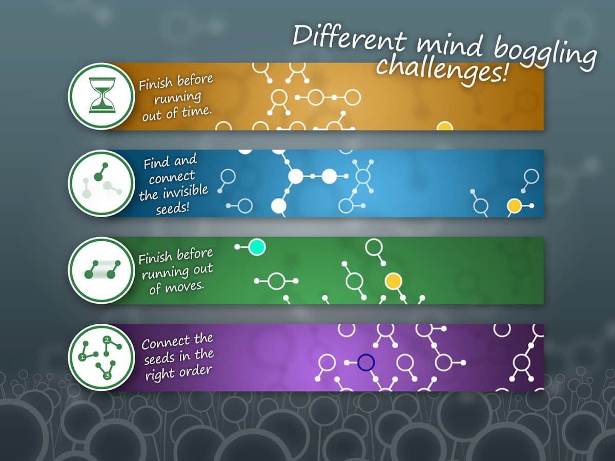 Dandelions: Chain of Seeds - Увлекательная головоломка на андроид, которая окунет вас в красочный мир молекул. Соединяйте их в правильном направлении, чтобы получить непрерывную цепочку на уровне. Вас ждет 60 интересных уровня в трех разноцветных мирах. Игра имеет не сложную графику, благодаря этому, она будет работать даже на самых слабых устройствах.