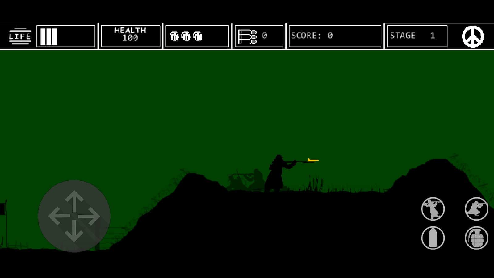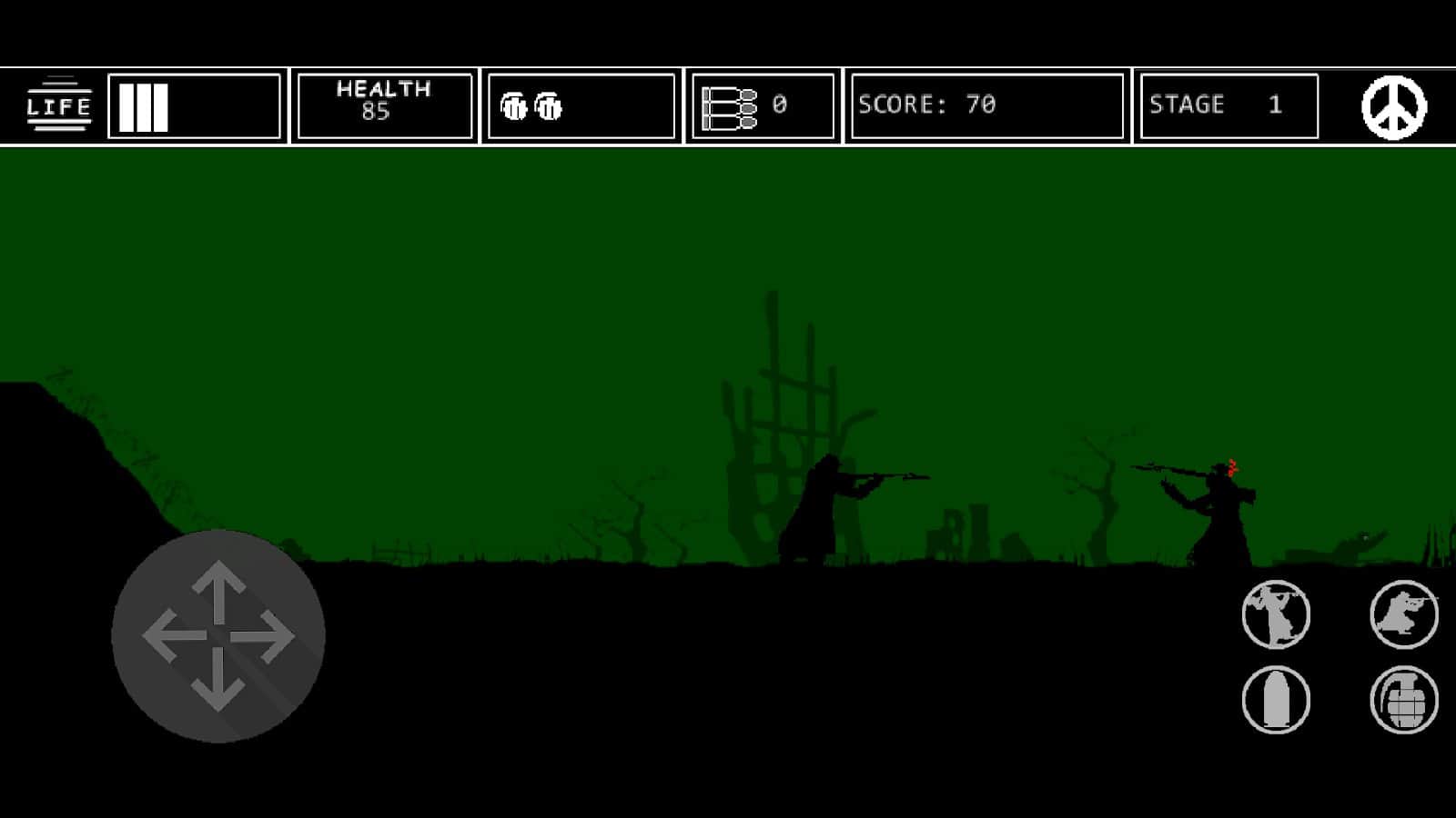 Dark legend of war - тысячи врагов повсюду, море крови, отчаяния и страха. На дворе идёт первая мировая война а всё что в можете видеть это море крови, горы трупов и раненых. Графика просто сделана но в то же время отлично передаёт так сказать дух тех времён. Пробирайтесь под градом пудь и уничтожаейте всех кто попадается вам на пути, а что может быть лучше пуль? Правильно граната, мощная, блестящая и разносящая всё на своём пути. Есть ещё и артилерия помогающая вам уничтожить всё что движется. В игре 12 уровней, каждый со своей уникальной локацией, попробуйте пройти их все.