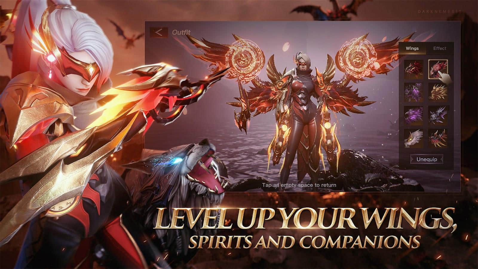 Dark Nemesis: Infinite Quest - Пройдите настоящее 3D приключение, столкнувшись с противостоянием добра и зла! Создайте уникального персонажа и постоянно прокачивайте его способности, а также уровень крыльев, духов и компаньонов. Берите активное участие во многих сражениях, даже если они касаются сложных боссов, а затем объединяйтесь в гильдию и пройдите через самые массовые бои. Вам придется не только сражаться со страшными врагами, но и выполнять ежедневные задания, проходить временную Усыпальницу и добывать как можно больше полезных ресурсов.