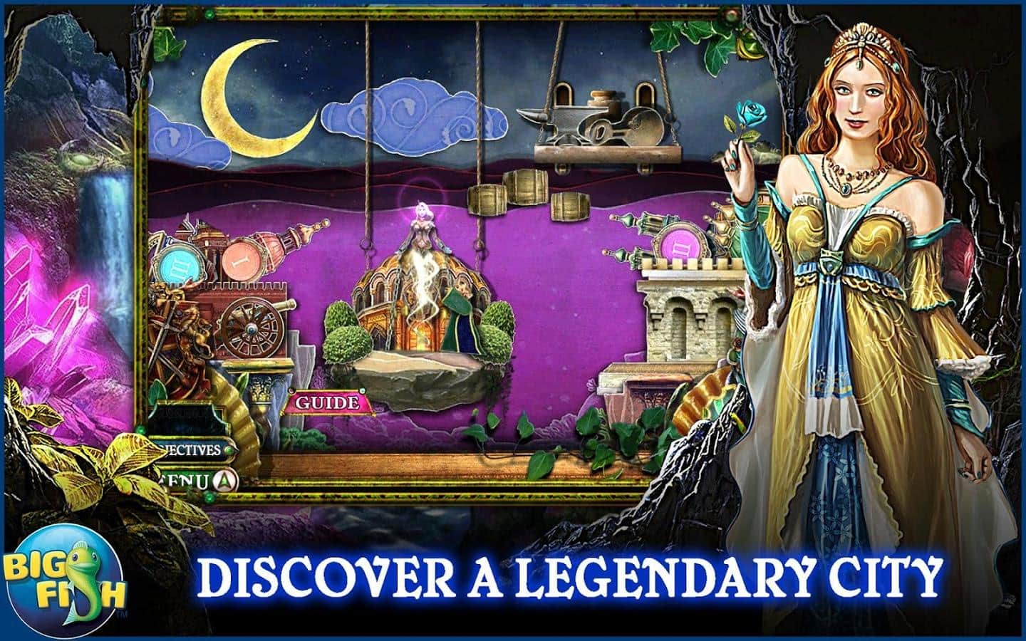 Dark Parables: Little Mermaid – начинайте вместе с нами играть в интересую приключенческую игру по поиску предметов с разгадыванием различных ребусов и головоломок. ВЫ играйте за частного детектива, которого наняли расследовать странное и весьма необычное дело пурпурного прилива. После того как вы увидели русалку, уже сложно было ещё чем-то вас удивить. Но поверьте игра запосла в рукаве ещё много козырей и готова в любой момент ими воспользоваться. Так что примите удобную позу и вперёд к расследованию. Дело происходит в Греции на острове Крит. После того как на часть острова обрушилось цунами, и появилось это загадочное явление в виде пурпурного прилива и после этого появился легендарный город .который веками был скрыт от глаз человека.