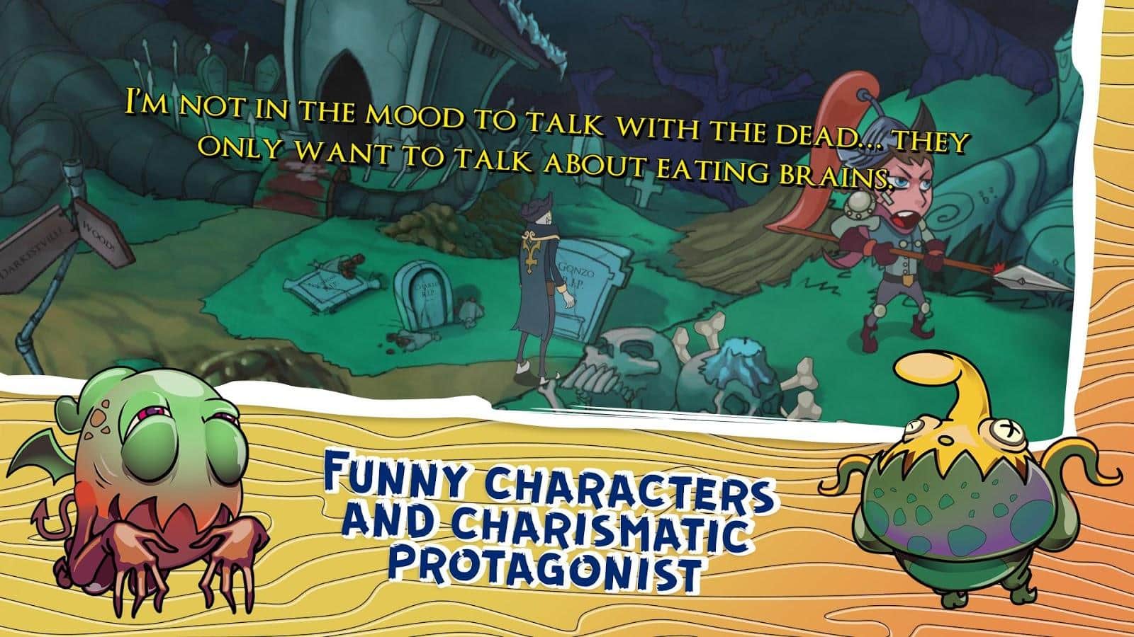Darkestville Castle – занимательный квест с увлекательным сюжетом на андроид. В этой игре вы будете играть роль демона Сида, который как все порядочные демоны каждую ночь устраивает пакости жителям Даркествиля. Неожиданно для себя и всех заклятый враг Сида раз и навсегда изменил жизнь главного героя. Отправляйтесь на встречу приключениям вместе с Сидом и узнайте что затеял Дэн Типот. Вас ждут незабываемые приключения, невероятные события, а также интриги и забавные ситуации. В этой игре вы будете помогать Сиду справится с братьями Ромеро который нанял ваш заклятый враг для уничтожения.