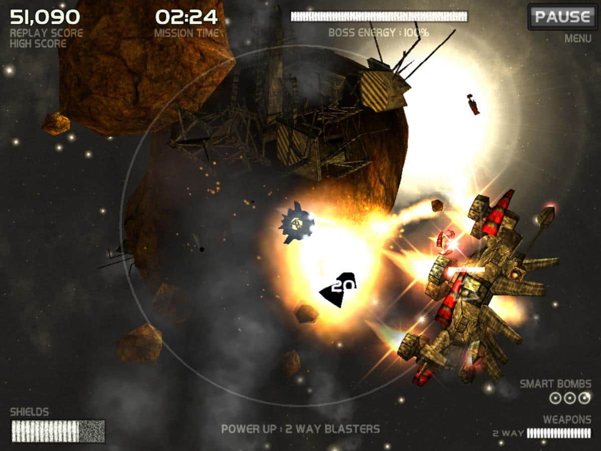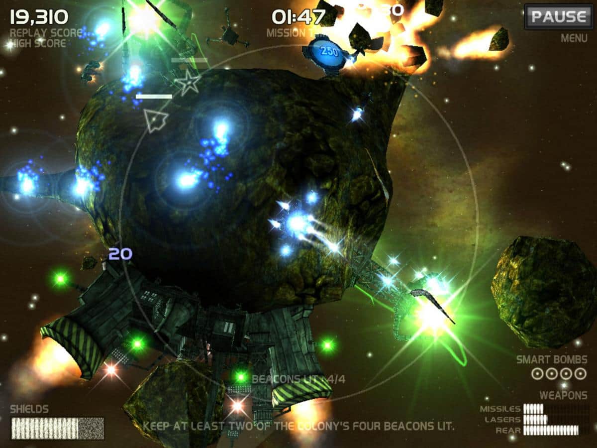 Darkside – космический шутер на IOS, где вы возьмете под свой контроль корабль и с помощью него будет уничтожать астероиды. Управляйте космическим кораблем и ведите непрерывный огонь по астероидам, приближающимся к земле. Проверьте на деле свою отличную реакцию и скорость пальцев и не дайте не одному астероиду упасть на землю. Всего в игре представлено более 100 уровней, множество различных бонусов и усилений которые будут помогать вам уничтожать астероиды. Играйте в эту игру и наслаждайтесь динамичным и захватывающим геймплеем, отличными спецэффектами и хорошей графикой.