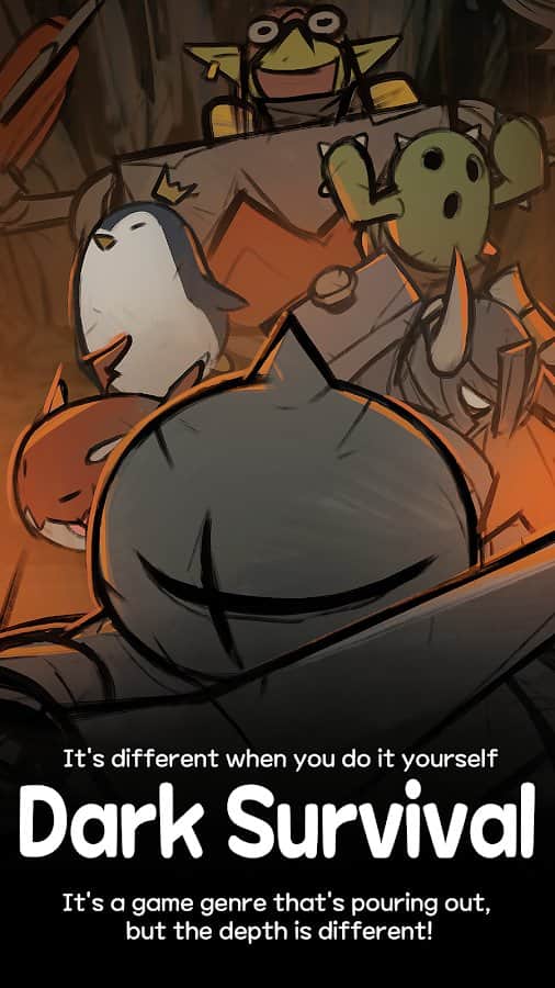Первое что меня приятуло к этой игре - пародия на Vampire Survivor (не игра, а шедевр), но, в меру моего получения всех достижений в стиме, на телефон решил не качать, поэтому был вынужден искать аналоги такого жанра. Моей критике поддалась большая часть игр, размещённых на play market, но достойных так и не нашёл, за исключением survivor.io, который, в свою очередь, мне уже глаза замозолил своей яркой графикой. Подойдя к сути, Dark Survival обладает атмосферным саундтреком, подходящим под продуманную автором мрачность игры, большим набором персонажей, которые могут быть открыты аналогично Vampire Survival - за добываемую валюту, что не ограничивает вас в выборе персонажа, возможность их прокачать по характеристикам и по статам (от уровня и от особых ресов).