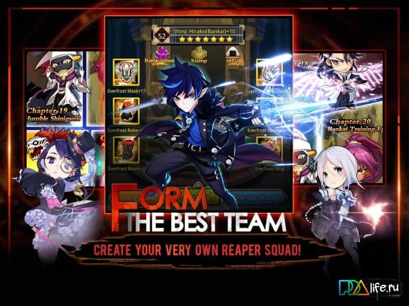 D'Arrancar – увлекательная игра на андроид, где вам предстоит собрать непобедимую команду героев и сразиться с потусторонними силами. Путешествуйте по многочисленным локациям игры и вступайте в бой различными врагами, применяя магические способности героев. Выполняйте задания и миссии предложенные вам игрой и пополняйте свою коллекцию новыми персонажами и героями. После удачного боя собирайте ценные трофеи и приобретайте новые элементы экипировки, оружие и полезные предметы. По ходу игры улучшайте способности своих героев деля свой отряд более сильным и выносливым, способным победить всех врагов.